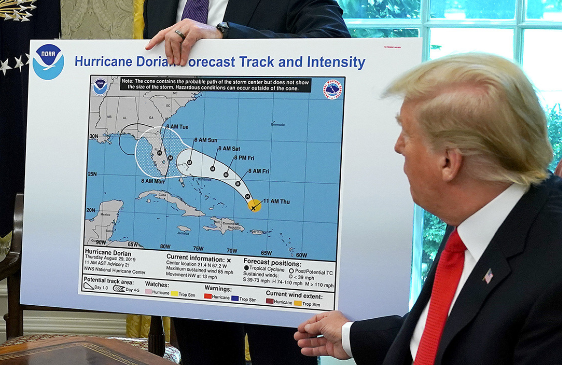 据Politico报道,4日,特朗普在白宫介绍飓风“多里安”的最新情况时,用笔修改美国国家飓风中心的地图,此举可能违反了联邦法律。