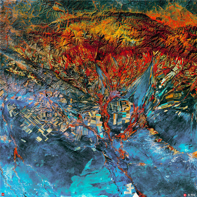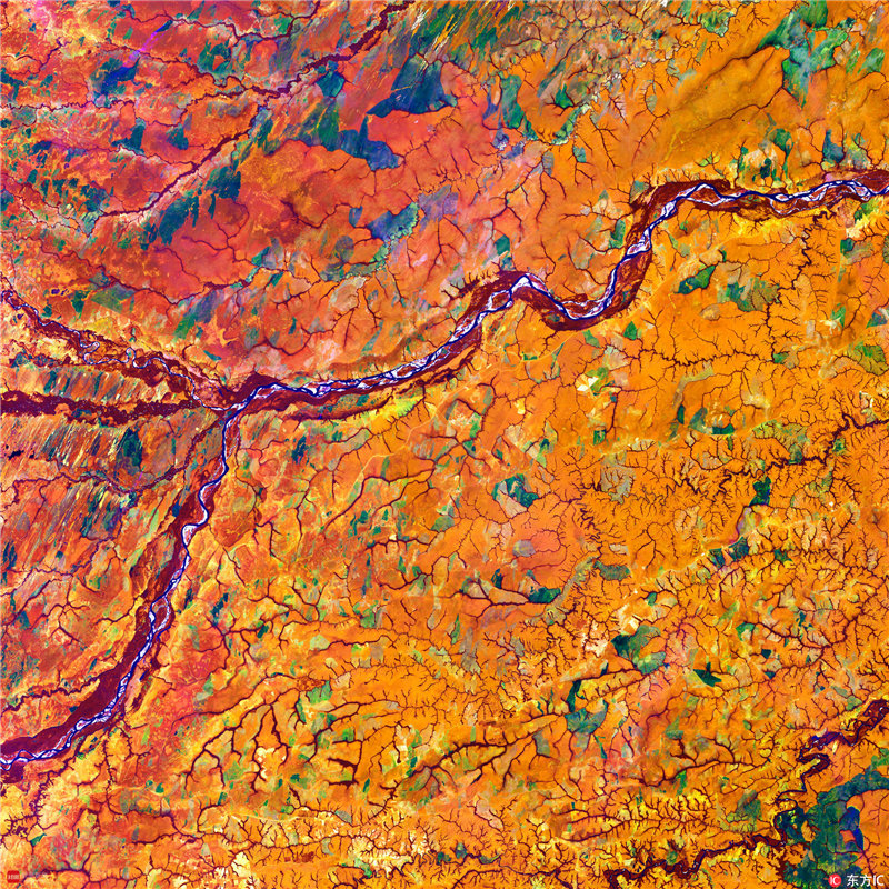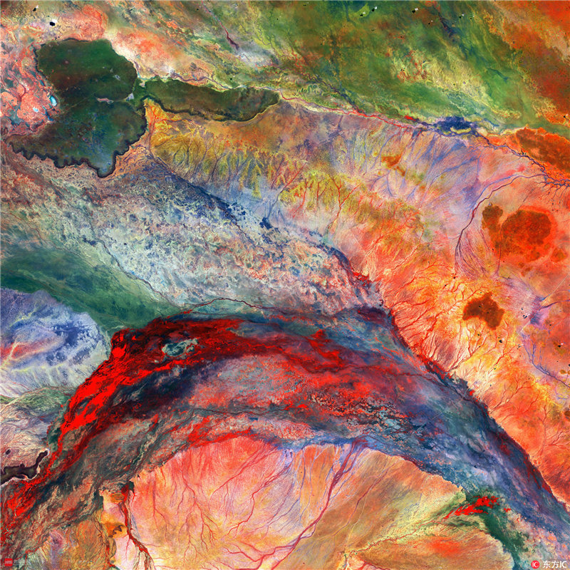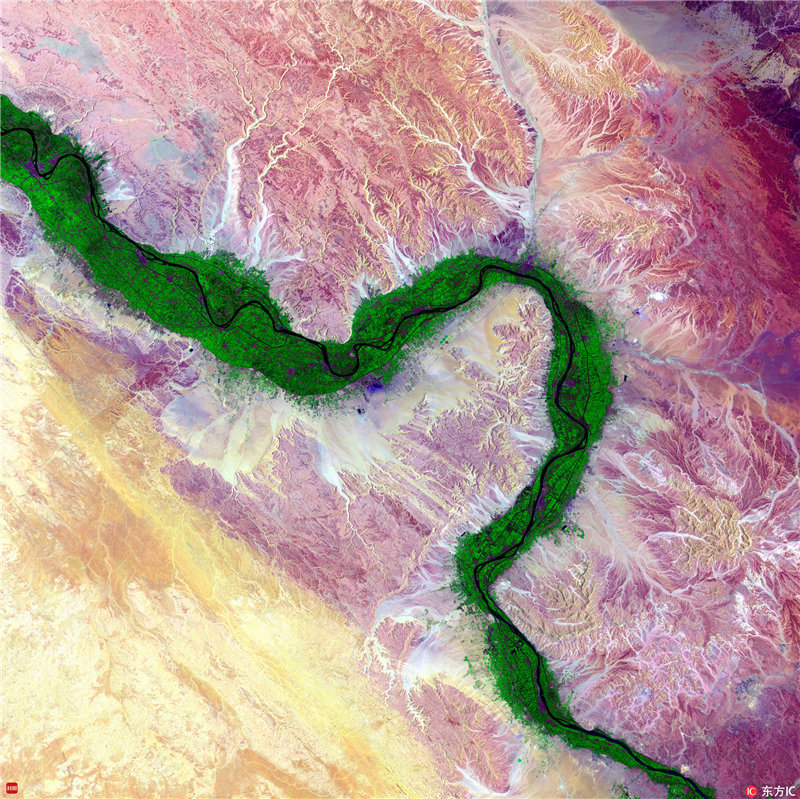 图为尼罗河与埃及沙漠。2017年3月3日报道(具体拍摄时间不详),这些迷幻的卫星图片会让你误以为是在看哪位大艺术家的抽象画。在其中一幅图片中,绿松石与黄色组成了哈萨克斯坦的农田风光;在另外一幅图片中,阿尔及利亚的沙哈拉沙漠看似红色与荧光黄交织的扎染布料。这些大自然的艺术照是Landsat 5、7及8号卫星拍摄的,由美国地质调查所公布。东方IC
