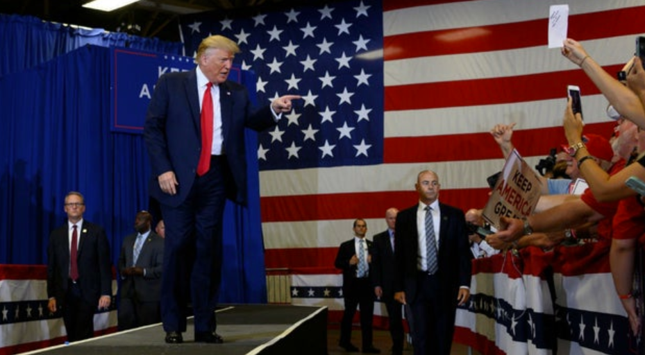 为了支持者能全部到场,特朗普告诉他们,自己准备在开放的体育馆而不是封闭的房间里举行集会,尽管外面下着雨。