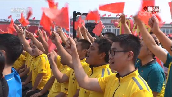 美团骑手不仅出现在群众游行方阵中,另外还有14名美团骑手在观礼台上作为观礼嘉宾见证了这一盛大庆祝活动。他们同样是美团外卖270万骑手的优秀代表,在平凡的岗位上作出了不平凡的贡献。