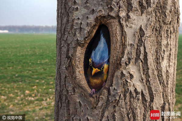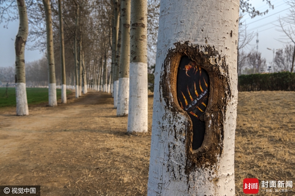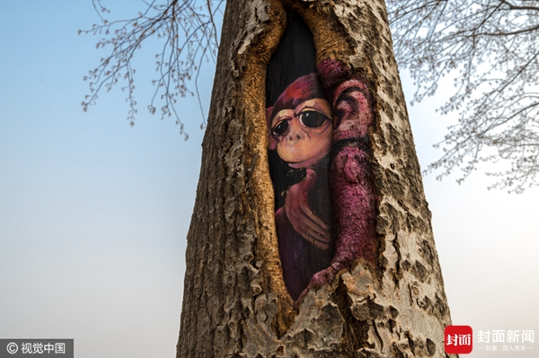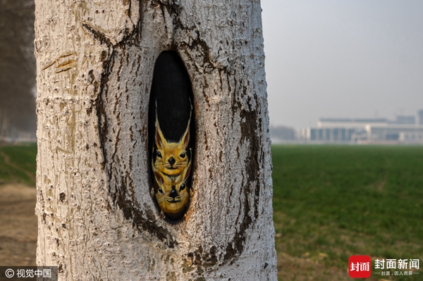北京通州区怡乐南街东侧的白杨林内,出现了很多造型可爱的“树洞画”。这些画就地取材,利用树洞、树疤、树缝的天然形状发挥创意,在不伤树身的前提下,给白杨林增添了几许春意和情趣,引得很多家长带小孩子到这片树林踏青,观赏拍照。