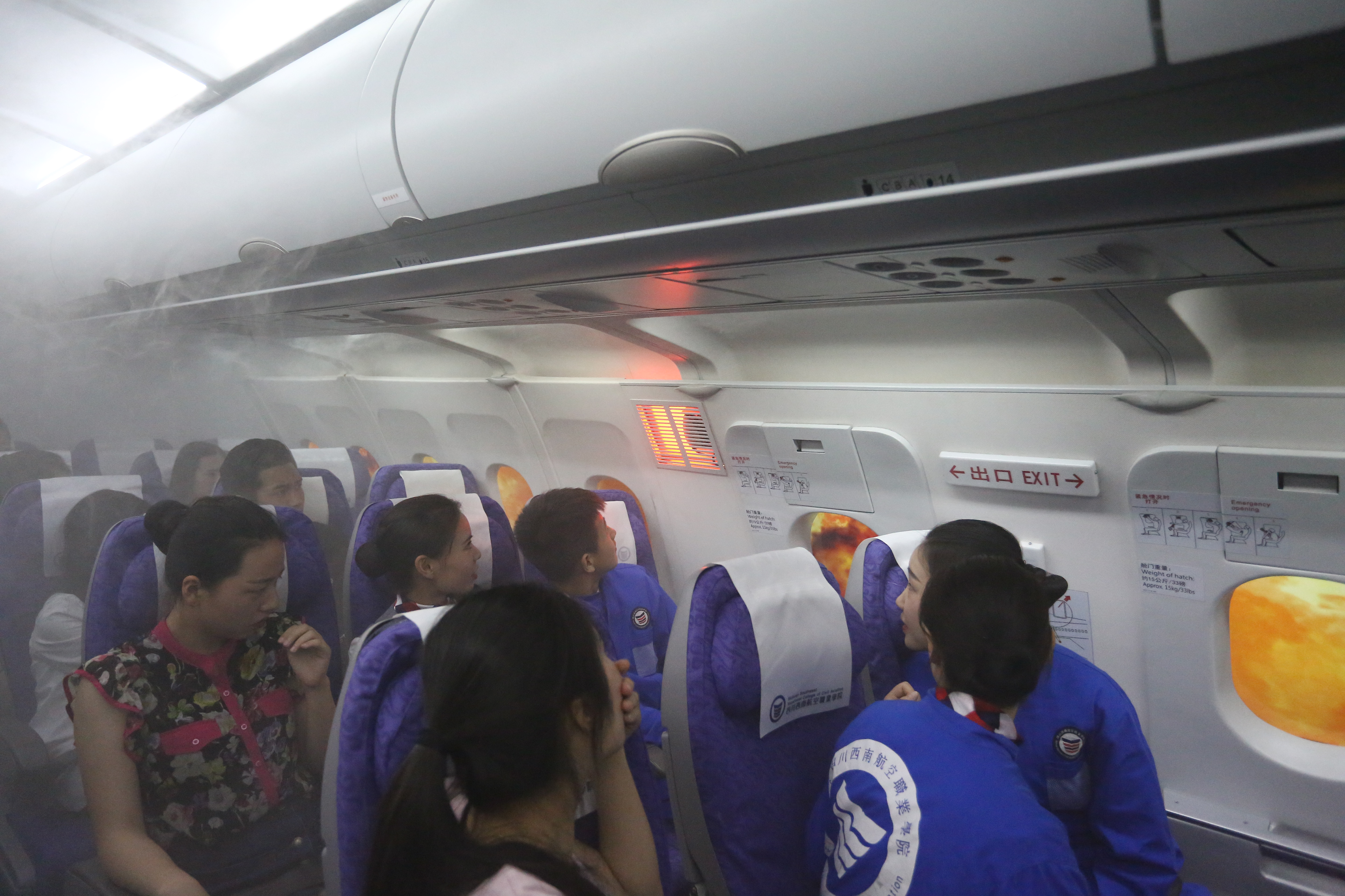 纳尼!?客舱侧壁“失火”啦?看着这滚滚的浓烟,说不害怕那是假的呀!