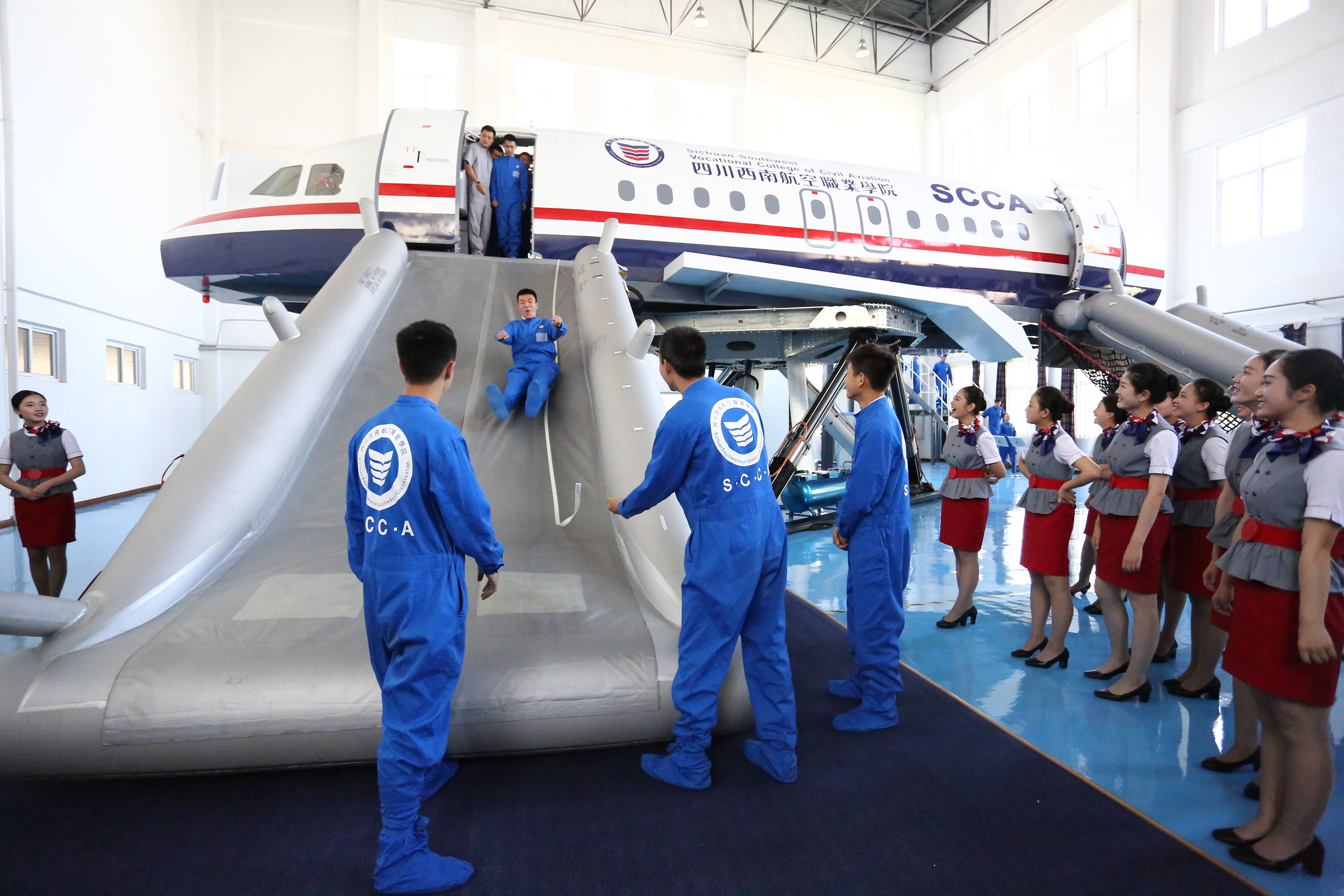 高空颠簸、客舱失火、路上紧急撤离、海上紧急撤离……这些飞机在飞行过程中可能遇到的各种航空紧急情况,在四川西南航空职业学院的训练中都会遇到。