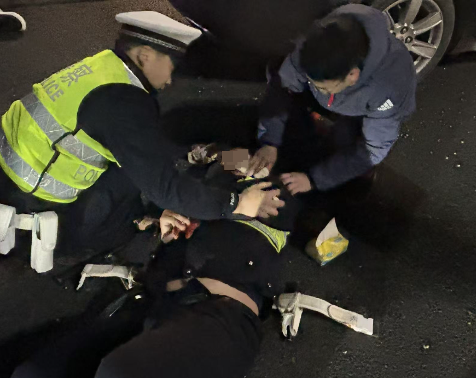 医生的直觉让陈健停下了车。他挤进人群,只见一名交警躺在地上,满脸是血,口腔和鼻腔都在往外渗血。周围的同事焦急地呼喊着,却都不敢轻易挪动伤者。