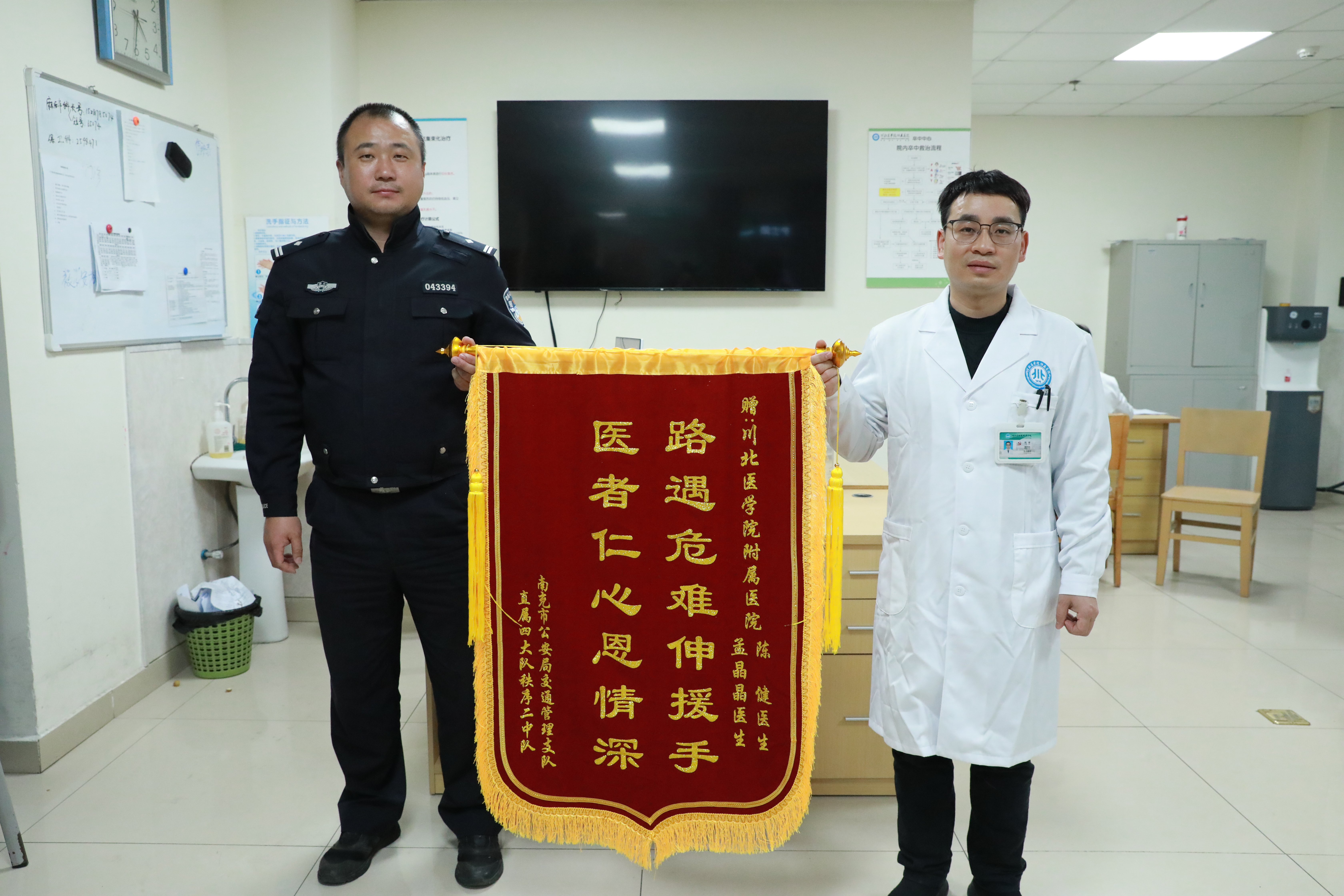 3月6日下午,四川南充市川北医学院附属医院茂源南路院区胸外科医生办公室,一位警官快步上前,紧紧握住主治医师陈健的手。