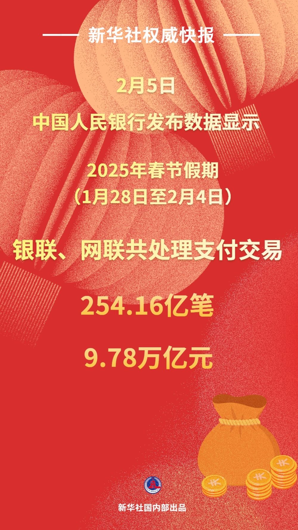 银联、网联共处理支付交易254.16亿笔、金额9.78万亿元