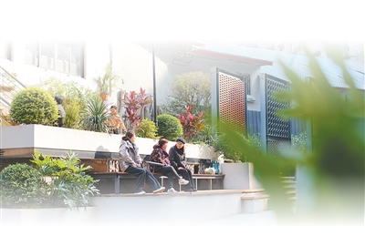 重庆市沙坪坝区沙坪坝街道一心村社区,居民在更新改造后的街巷休息。 孙凯芳摄(影像中国)