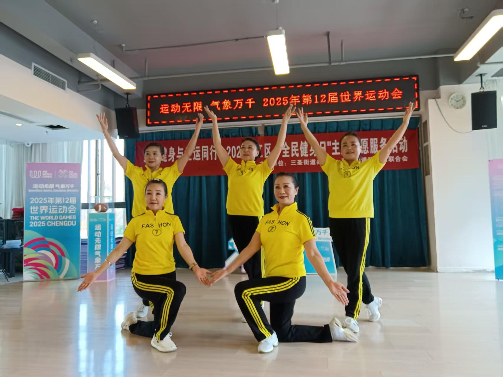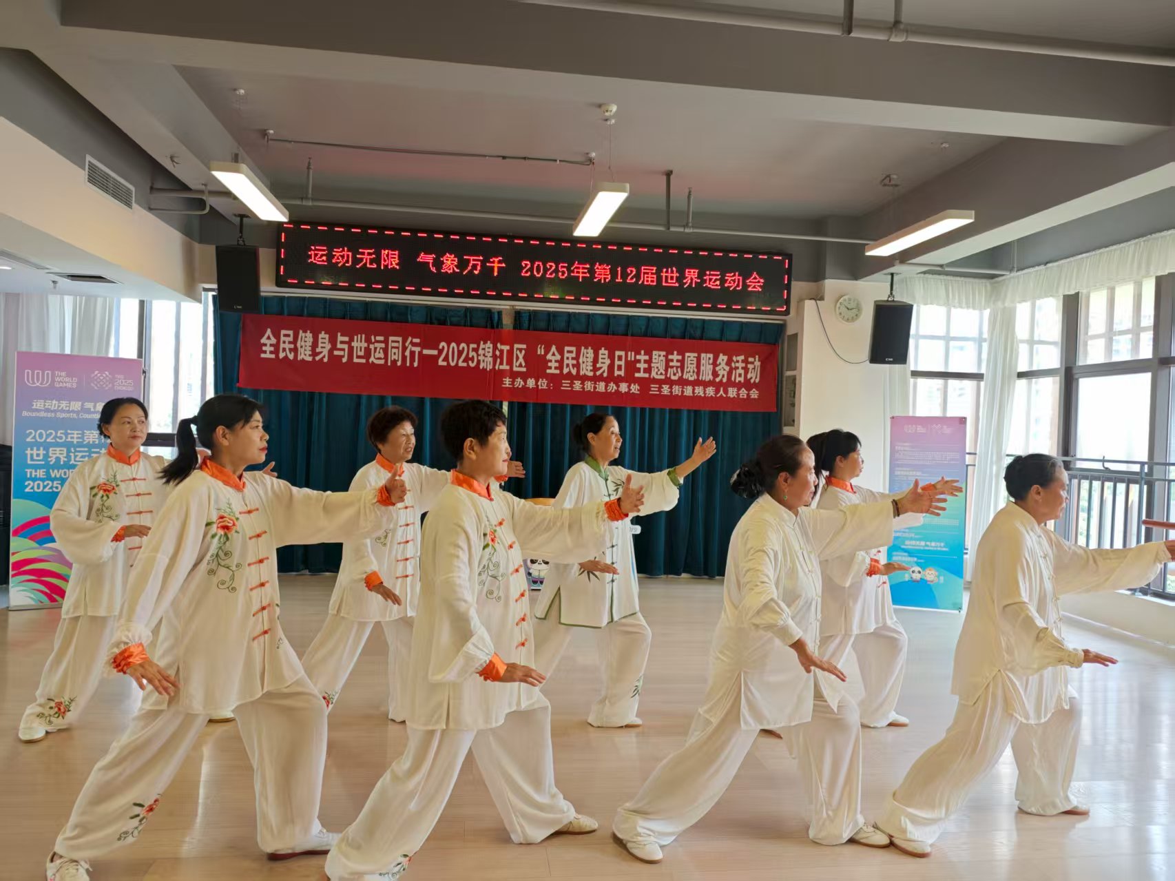 成都世运会日渐临近,8月5日,由成都市锦江区文化体育和旅游局与锦江区三圣街道办事处联合主办的 “全民健身与世运同行”主题志愿服务活动,在三圣街道综合文化服务中心热闹举行。据悉,此次活动紧扣全民健身国家战略与健康中国建设目标,以多元化的健身项目展示和互动体验,点燃市民运动热情,推动全民健身理念落地生根。