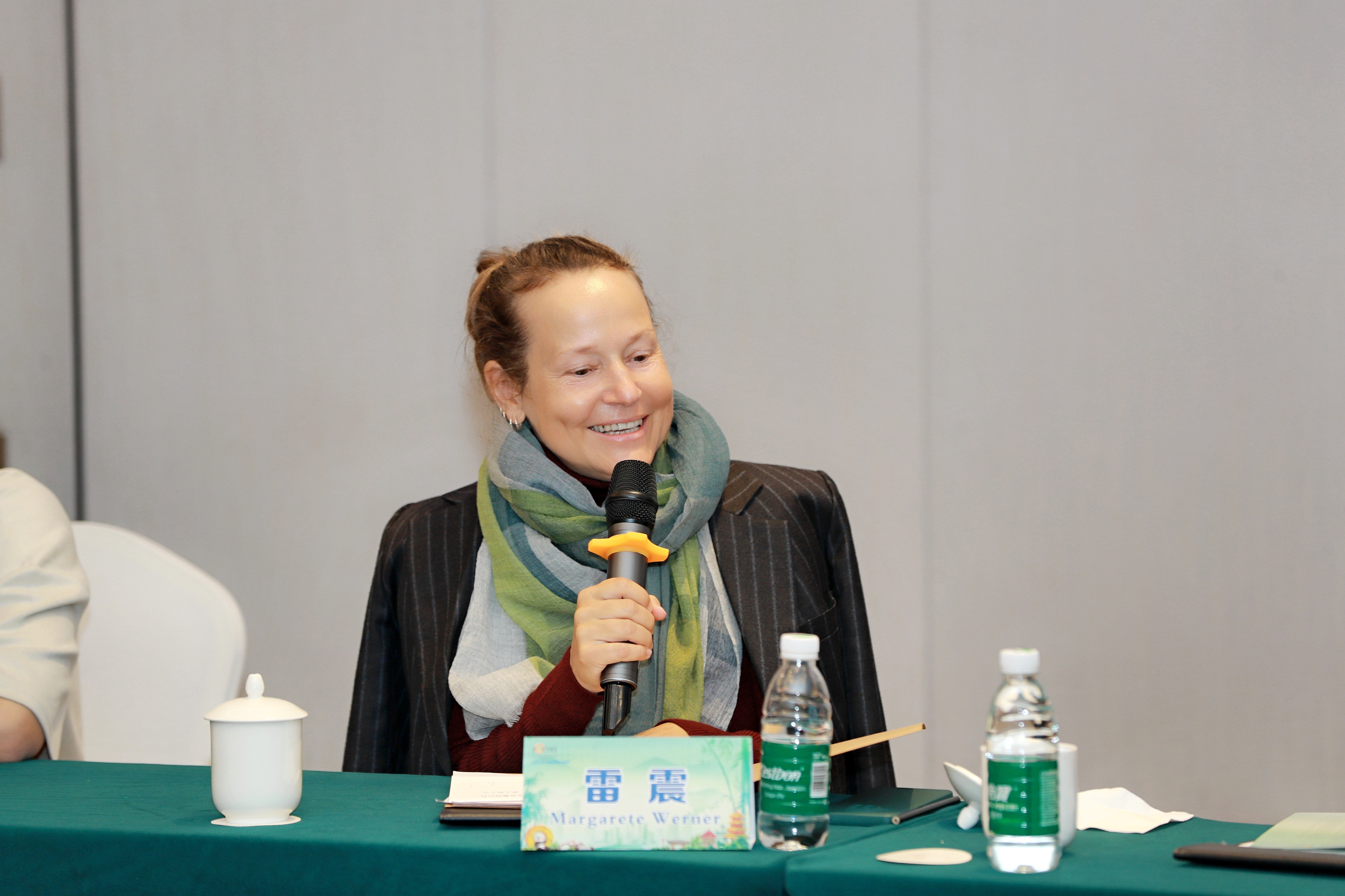 德国的诗人、画家雷震对中国文化有深入的理解,她用中文作的发言中,引用周作人关于文言与白话文并没有绝对的界限的一段话,谈到她对中文诗歌的理解,“文言和白话,古文和现在的措辞,是同一种语言的不同措辞,更可以根据作者的需要,自然、自由地分配运用,这也是中文的最高境界。”她还提到,美国诗人埃兹拉·庞德善于吸收中国古典诗词的美学经验,采用意象叠加的方法,有效地传达了自己的现代都市体验。(图据主办方)