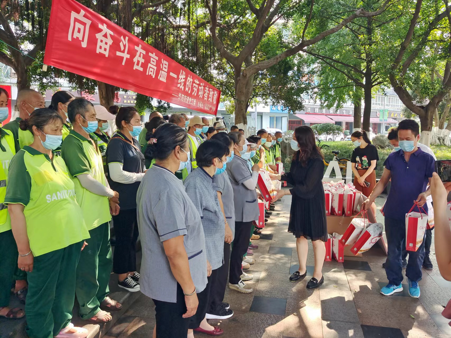 为环卫工人送上防暑降温物资