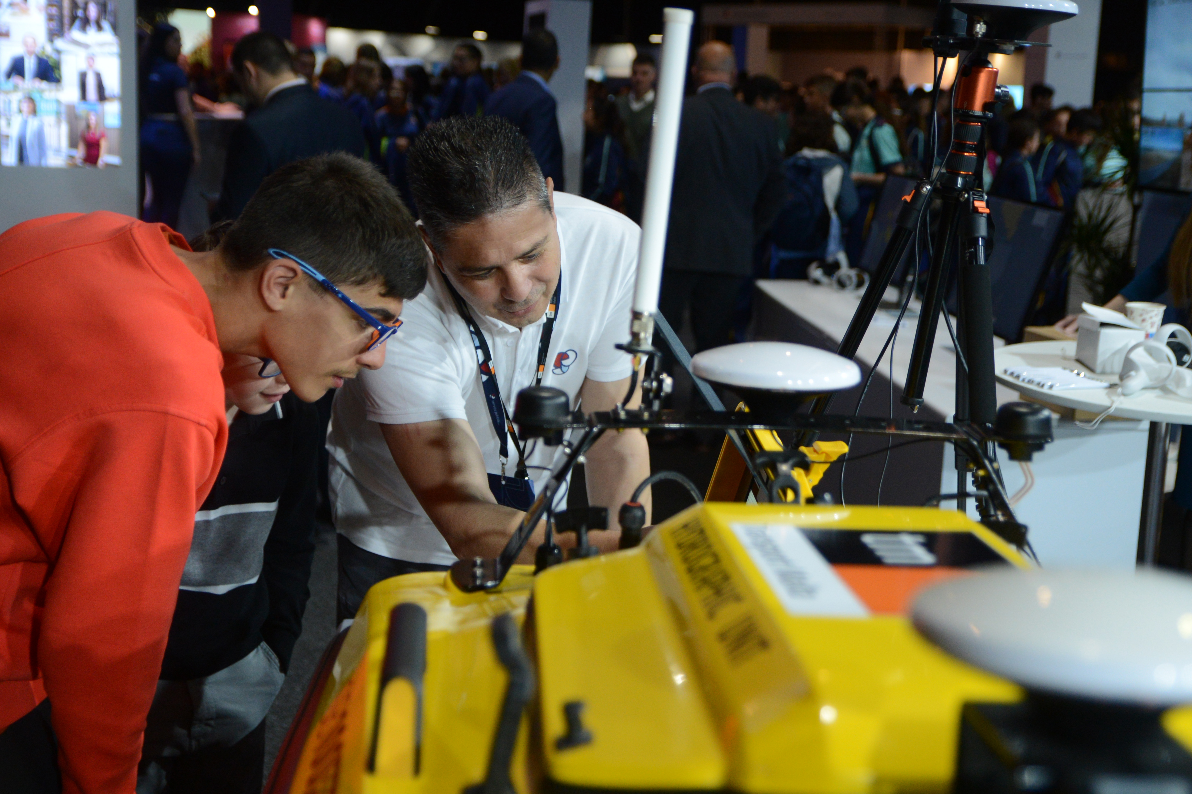5月12日,在马耳他阿塔尔德举行的公共服务展上,工作人员向学生讲解一款水下机器人。新华社发(乔纳森·博格摄)