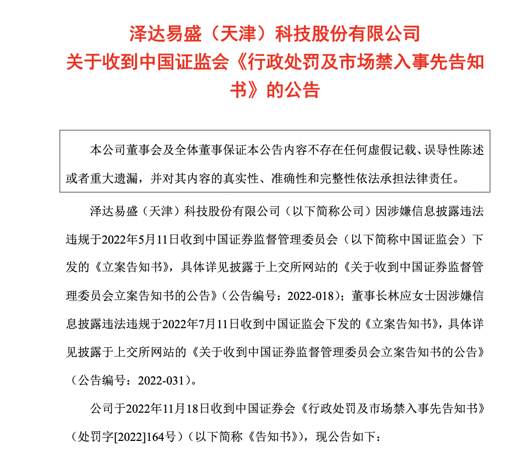 目前,*ST泽达表示,尚未收到就上述立案调查事项的正式处罚决定。