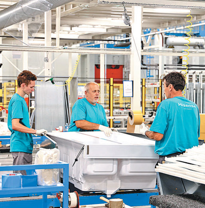 中国家电企业海信集团位于塞尔维亚瓦列沃的冰箱工厂今年9月正式投产运营。图为工人在生产线上忙碌。 本报记者 刘仲华摄