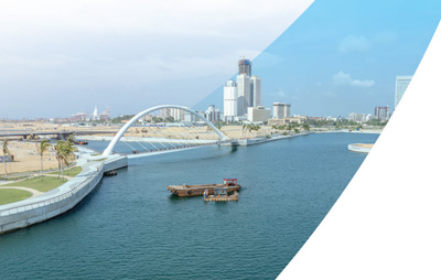 正在建设中的斯里兰卡科伦坡港口城是中国与斯里兰卡共建“一带一路”重点合作项目。图为科伦坡港口城一号步行桥及游艇码头区。 杨 一 向 楠摄影报道