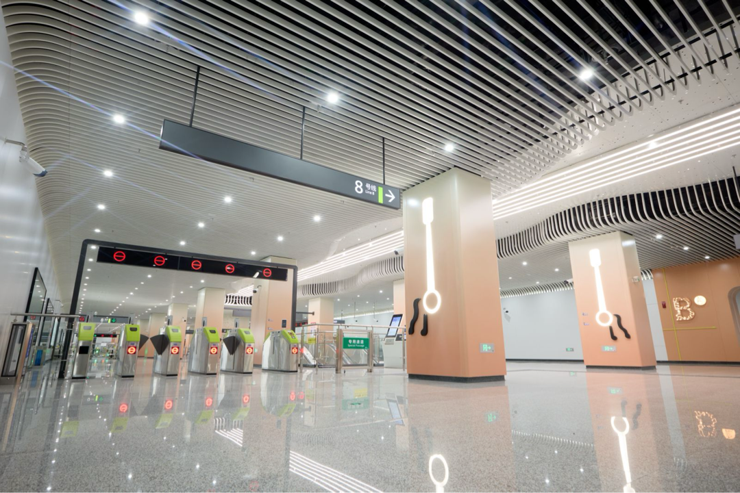 据悉,8号线二期、27号线一期全线应用智慧车站、智慧维保功能,实现智慧开关站、视频全景巡站、智慧客流、机电设备状态巡检及自诊断、消防渗漏水监测、给排水汛情预警等创新功能,系统自动化程度高,能有效提高车站运营效率、设备巡检效率和运维质量。与此同时,车站采用风水联动系统,实时监测站内环境指标,优化空气质量,节能环保,提升乘客舒适度。