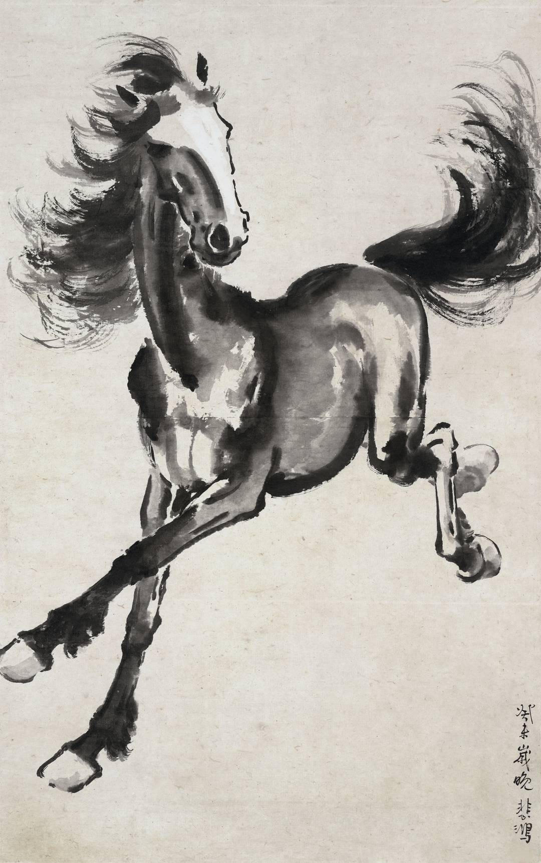 作为中国近现代美术史上枢纽式的人物,徐悲鸿将西洋画的写实功力与中国画的写意精神融合,创造出代表民族不屈脊梁的“千里马”形象。这些画作中展现出的昂首奋蹄、坚忍不拔的马,已成为民族精神有力的视觉注脚。
