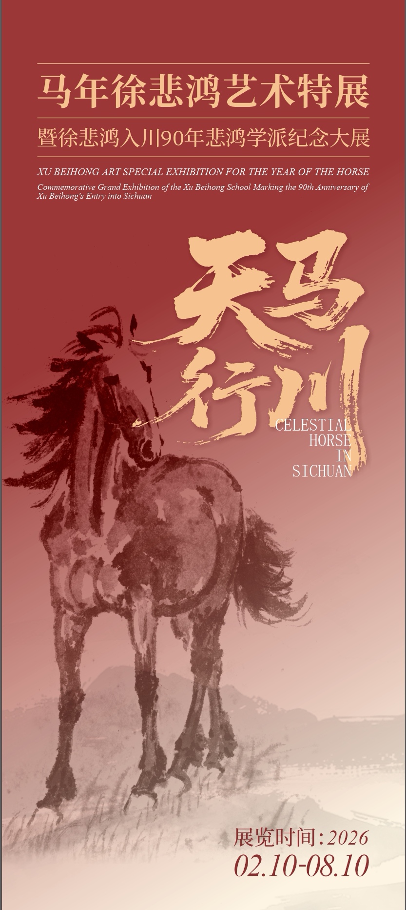 2月10日,“天马行川——马年徐悲鸿艺术特展暨徐悲鸿入川90年悲鸿学派纪念大展”将在四川报业博物馆正式启幕。