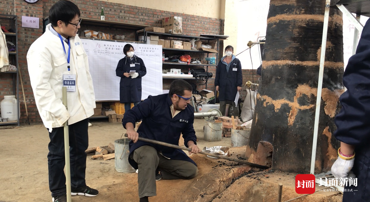 “我们现在在做的工作是在给炉底加热,达到一定温度后再加入矿石,慢慢开始冶炼。”上午11点过,现场工作人员仍在不断向炉内投入燃料,为冶炼生铁做第一步工作。温度达到一定标准后,工作人员将向内添加矿石,尝试通过调整变量以达到对汉代冶铁技术各方面的深入对比研究,全面真实地还原汉代冶铁技术与冶炼过程。