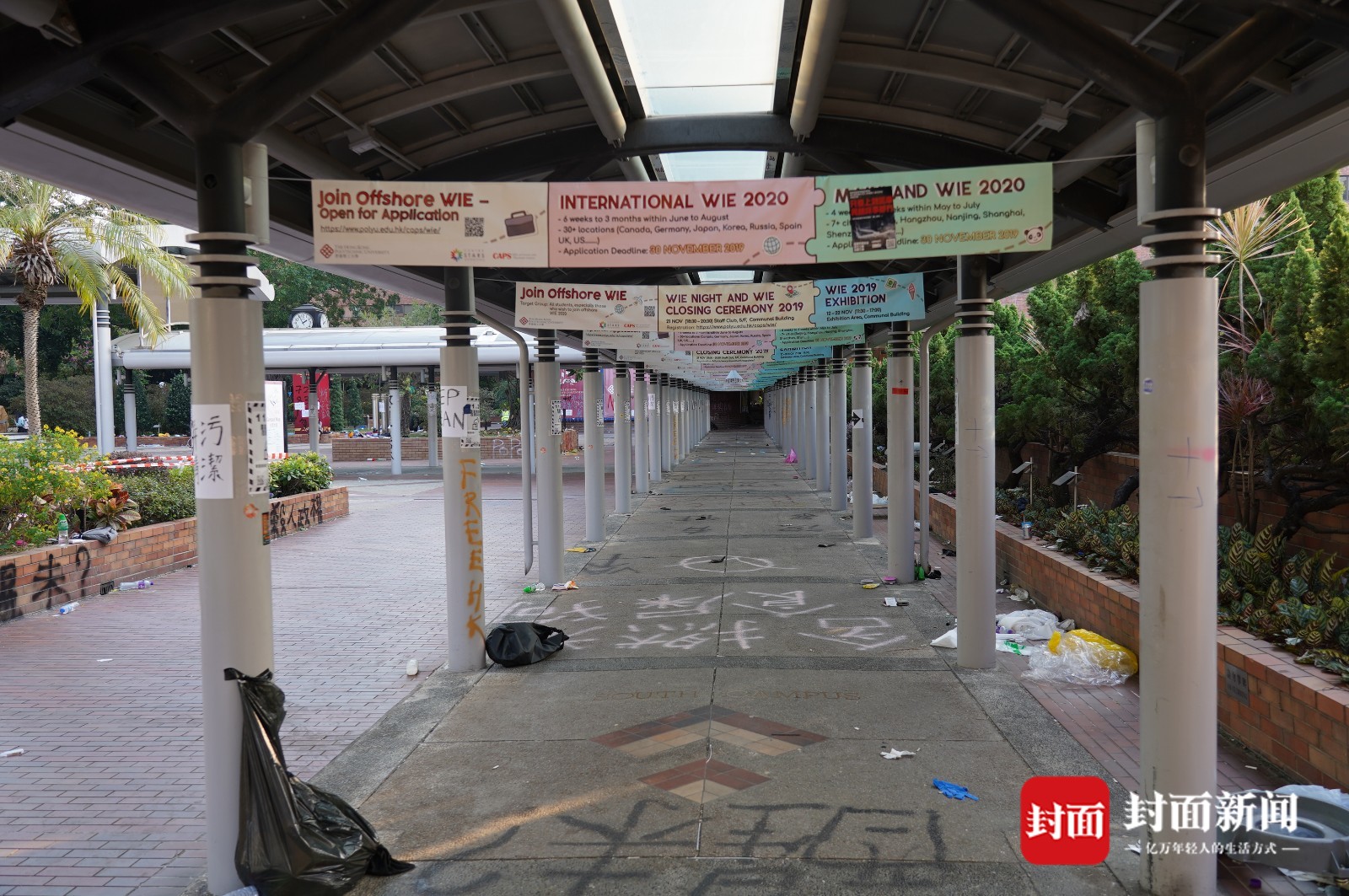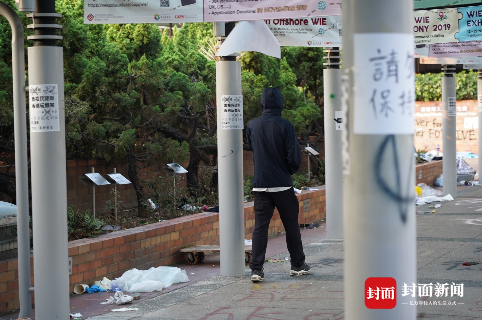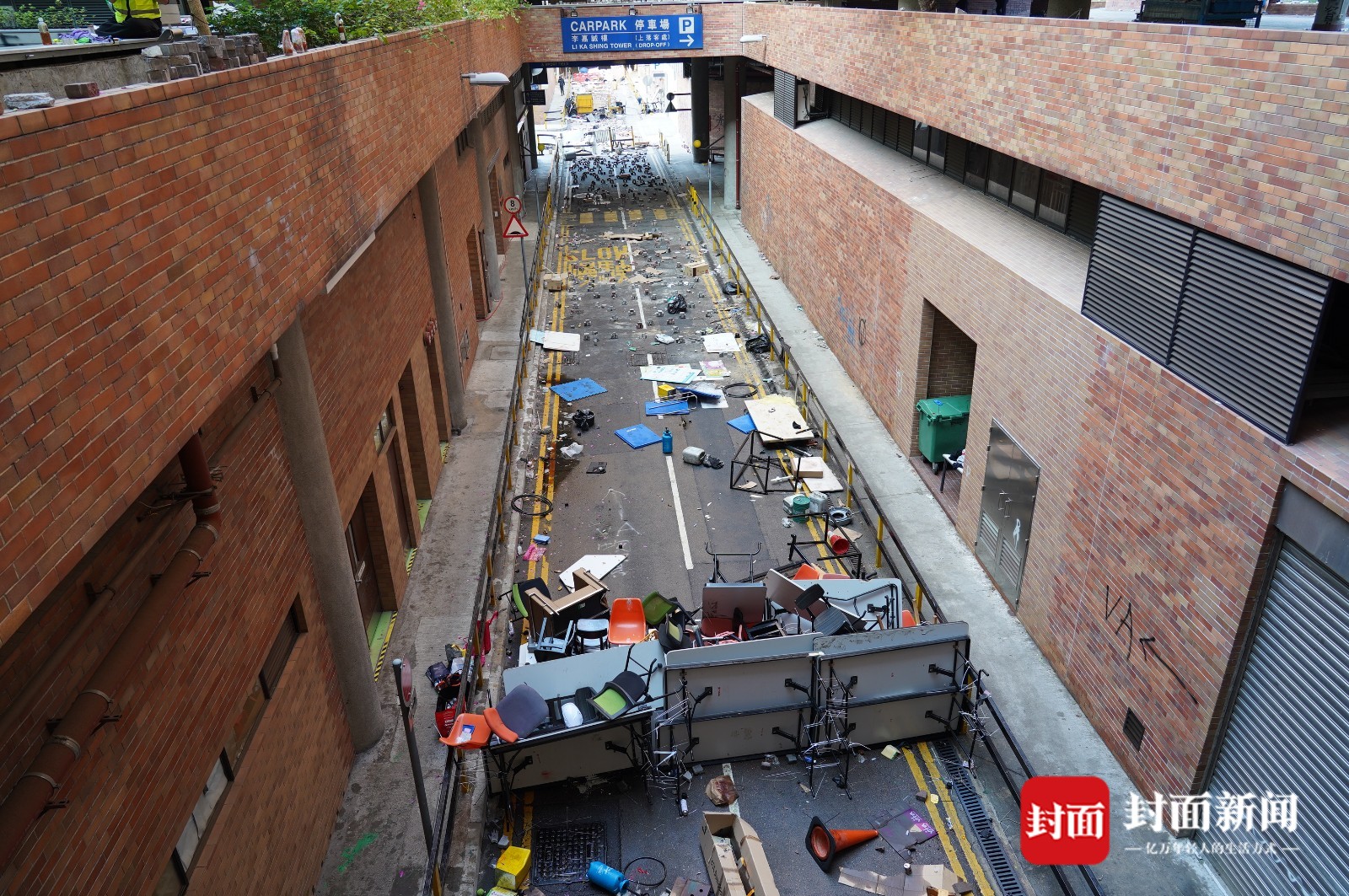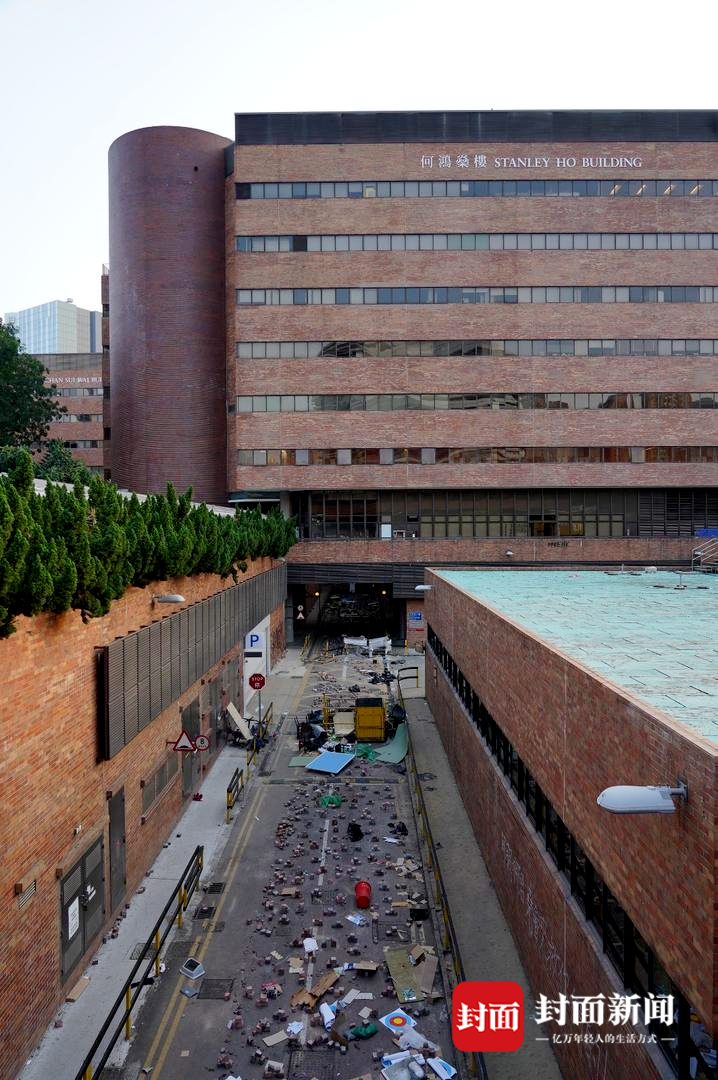 11月20日下午,在得到警方许可后,封面新闻记者进入理大校园探访,这座有着82年历史的学府,已经完全变成另一副模样。