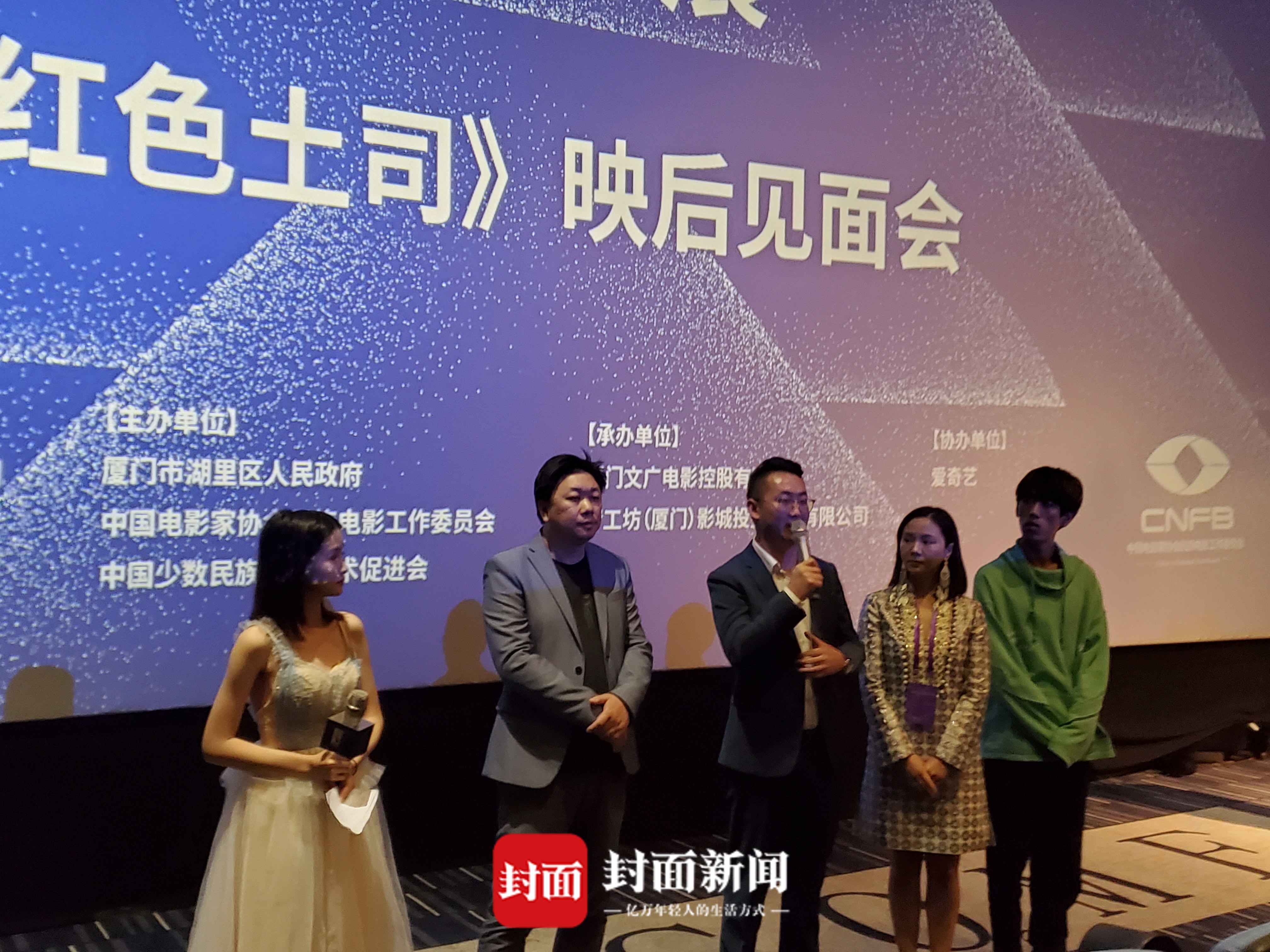 “电影《红色土司》拍得很感人,我是一直流着眼泪看完的!” 2019年11月21日上午,“天仙妹妹”尔玛依娜和导演艺兮携我国首部羌族红色革命英雄题材电影《红色土司》,在厦门第28届金鸡百花电影节的东北察塘中影梦工坊巨幕城3号厅,公开展映,受到欢迎,有观众如是说。