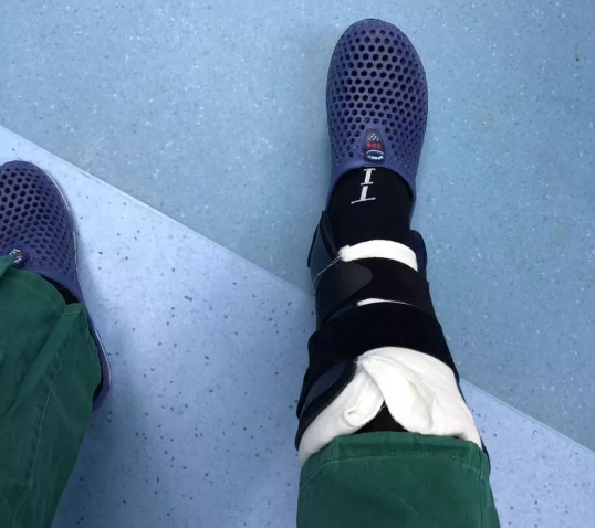 身穿绿色手术服,手握一纸文件,坐在滑轮转椅上,单脚蹬地,瞬间转移。近日,一个短视频在成都医疗界微信朋友圈火了。据了解,视频中的“滑轮医哥”是成都市中西医结合医院麻醉科医生党亮。不久前,党亮下班后参加医院羽毛球队活动,不小心扭伤了右脚,到本院骨科就诊。骨医生陈志超经核磁检查发现,党亮右脚腓距前韧带撕裂。“打石膏、杵拐杖、戴护具,尽量躺床上,没事别乱动。伤筋动骨100天,你这盘起码要休息一个月以上。”陈志超要求党亮配合治疗,否则会影响伤口愈合,甚至留下后遗症,导致复发。