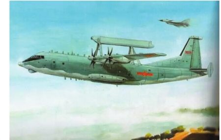 飞翔的“平衡木”。空警200预警机与护航的歼10战斗机。 (陈应明画作,图据航空知识)