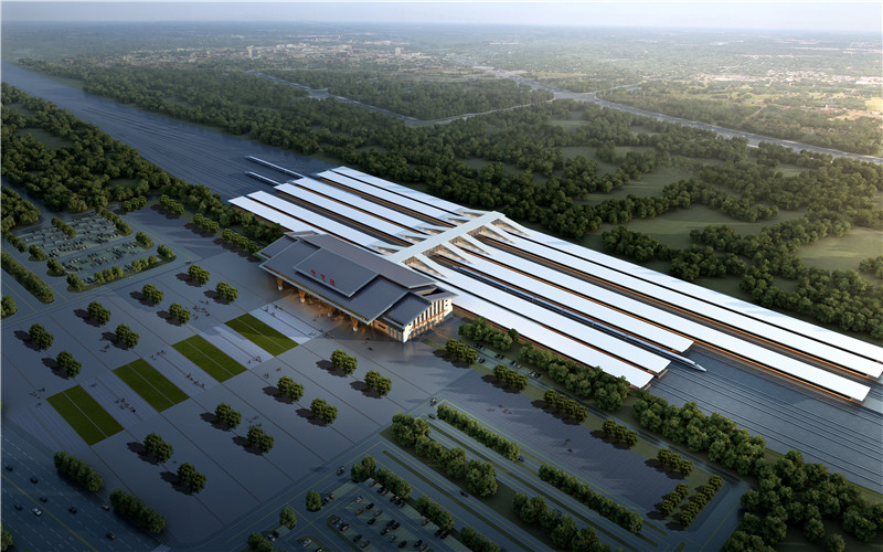 站场设计规模为8站台面12线,其中成贵场5站台面7线,叙毕场3站台面5线。设450m×12m×1.25m侧式站台1座、岛式站台2座(成贵线),550m×12m×1.25m 岛式站台2座(叙毕场)。站台上设等长等宽的双柱双悬挑钢筋混凝土雨棚。设12m宽旅客进站天桥和旅客出站地道各1座。站房、进站天桥及成贵场的站台铺装、雨棚、旅客地道装修由客站建设指挥部代建。