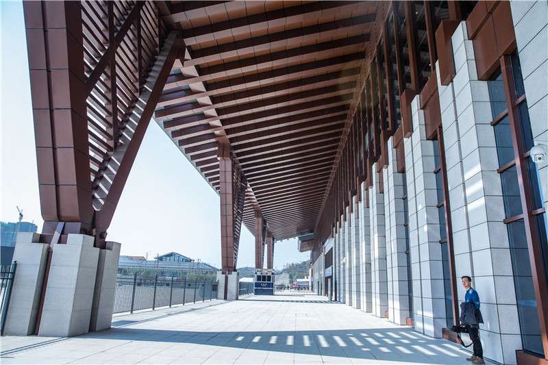 毕节车站为中型铁路旅客车站,为线侧平站房,采用“上进下出”的客流组织模式,按最高聚集1500人设计。站房东西全长158m,南北宽48m,站房建筑面积为19969.82㎡,站台雨棚覆盖面积为16200.0㎡,旅客跨线天桥投影面积为2098.42㎡,旅客地道面积为2916.07㎡,总投资为2.87亿元。