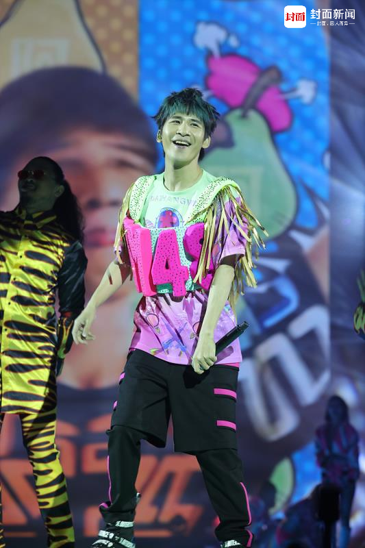 在榜中榜舞台上给观众献上劲歌热舞的大老师这次的造型也别出心裁,粉绿搭配的造型颇具“大式风格”,而最惹人注目的则是他胸前“DM48”的字样。