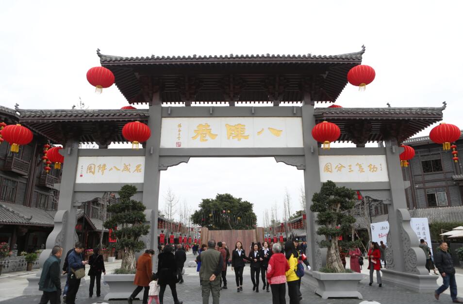 据街区相关负责人介绍,古时弥牟镇又名唐家寺,距今已1000多年历史,因地理优势是兵家必争之地,“八阵巷”名字的由来正是因为紧临三国时期的遗址“诸葛八阵图”,相传这里曾是诸葛亮的“练兵场”。为了更好地将“古镇唐家寺”的文化、历史、名俗、美食发扬光大,2019年4月,弥牟镇启动了“八阵巷”特色美食街建设。通过半年的基础设施改造,街区整体风貌打造,街区文化内涵及景致塑造,呈现出了一条整齐干净,极具三国文化底蕴的特色街区。