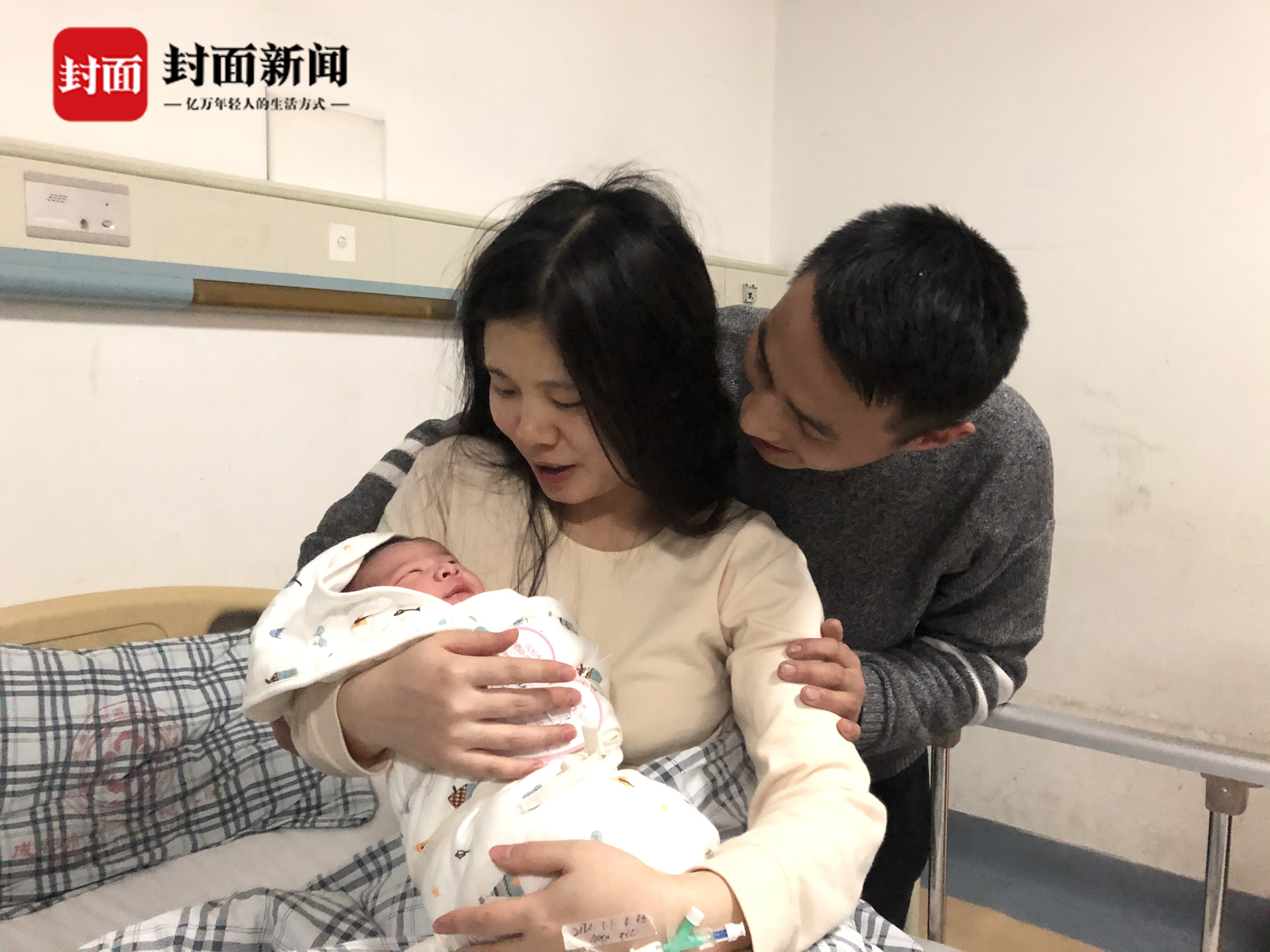 24岁的廖先生说道,他老婆冯女士与他同龄,两人因工作结缘。孩子的预产期本是1月3日,没想到提前出生,特别开心在这个特殊的日子里迎接宝宝的来临,但心里也特别难受,因为他老婆昨晚开始发作,一直疼痛至宝宝的出生,心疼老婆。