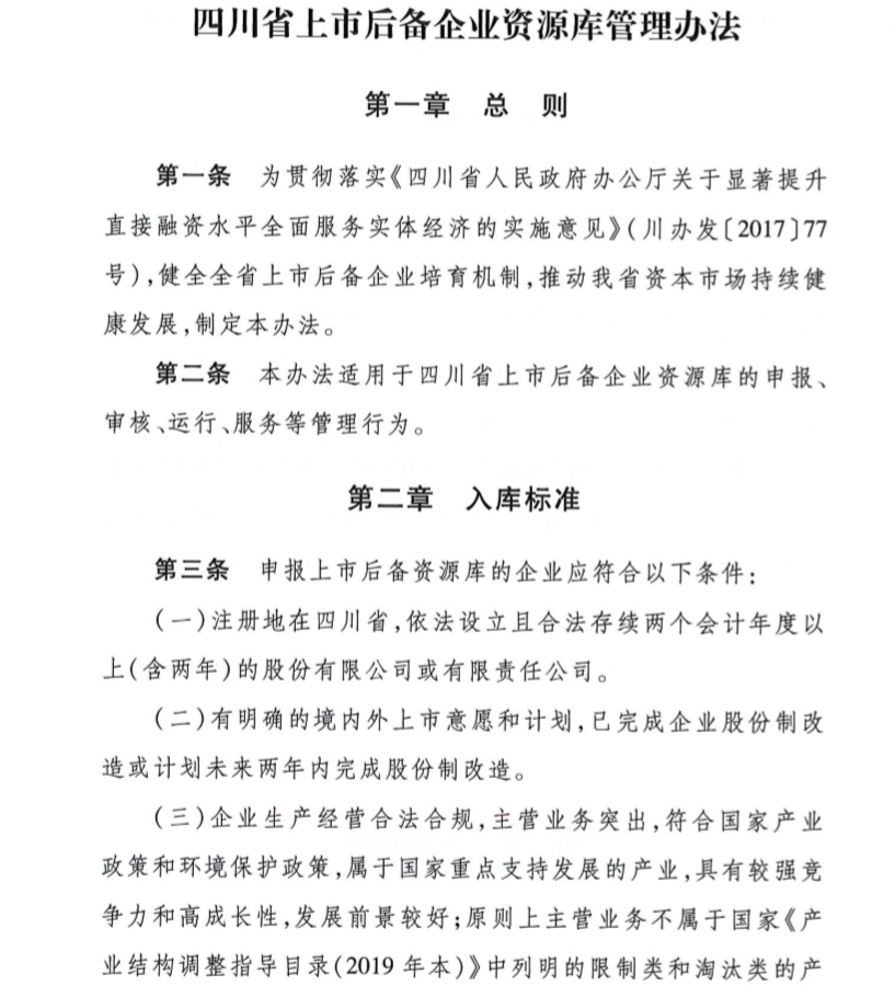 《四川省上市后备企业资源库管理办法》