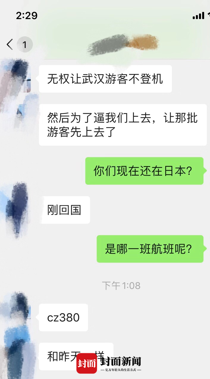 “飞机上有湖北人”!这个消息很快在所有乘坐该航班的乘客间传开。湖北籍乘客也不得不接受其余乘客的“注目礼”。