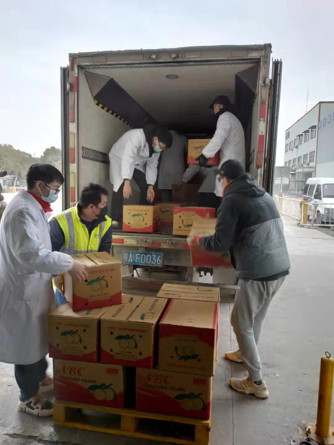 2月1日,由佳沃(青岛)果业有限公司拿出的300箱智利蓝莓、200箱河北皇冠梨、200箱脐橙、100箱智利车厘子送达武汉,交到了华中科技大学同济医学院附属协和医院、华中科技大学同济医学院附属同济医院,这两家医院的工作人员手中。新疆库尔勒香梨协会也筹措了价值约158万的100吨香梨对接给到武汉各大医院。同时,由上海亲民有机食品有限公司的320箱稻米,希沃(上海)商贸有限公司捐出的3000箱阮婆婆速食面,也已经通过盒马的物流供应链,免费送达武汉的各大医院。