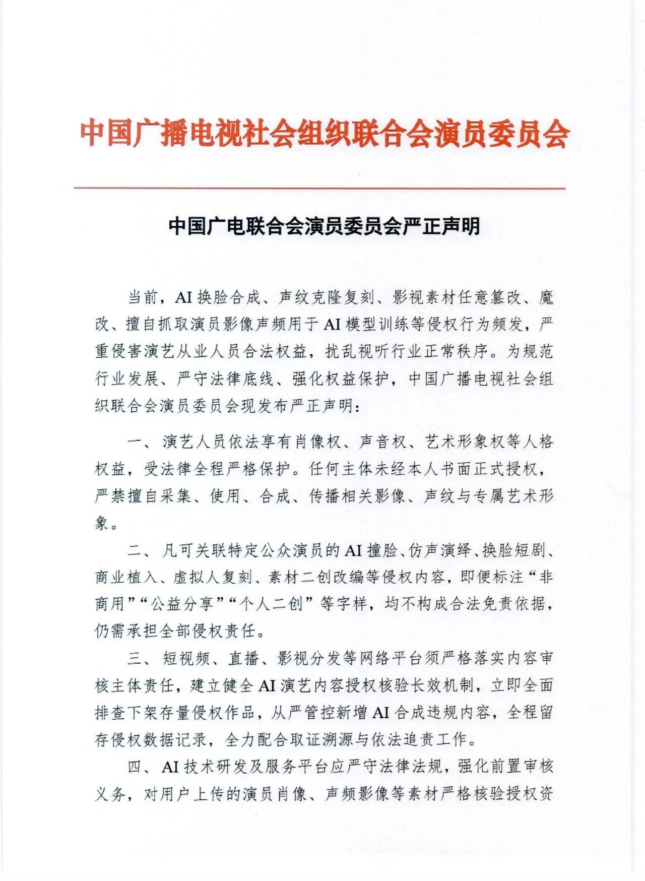 中广联演员委员会声明。
