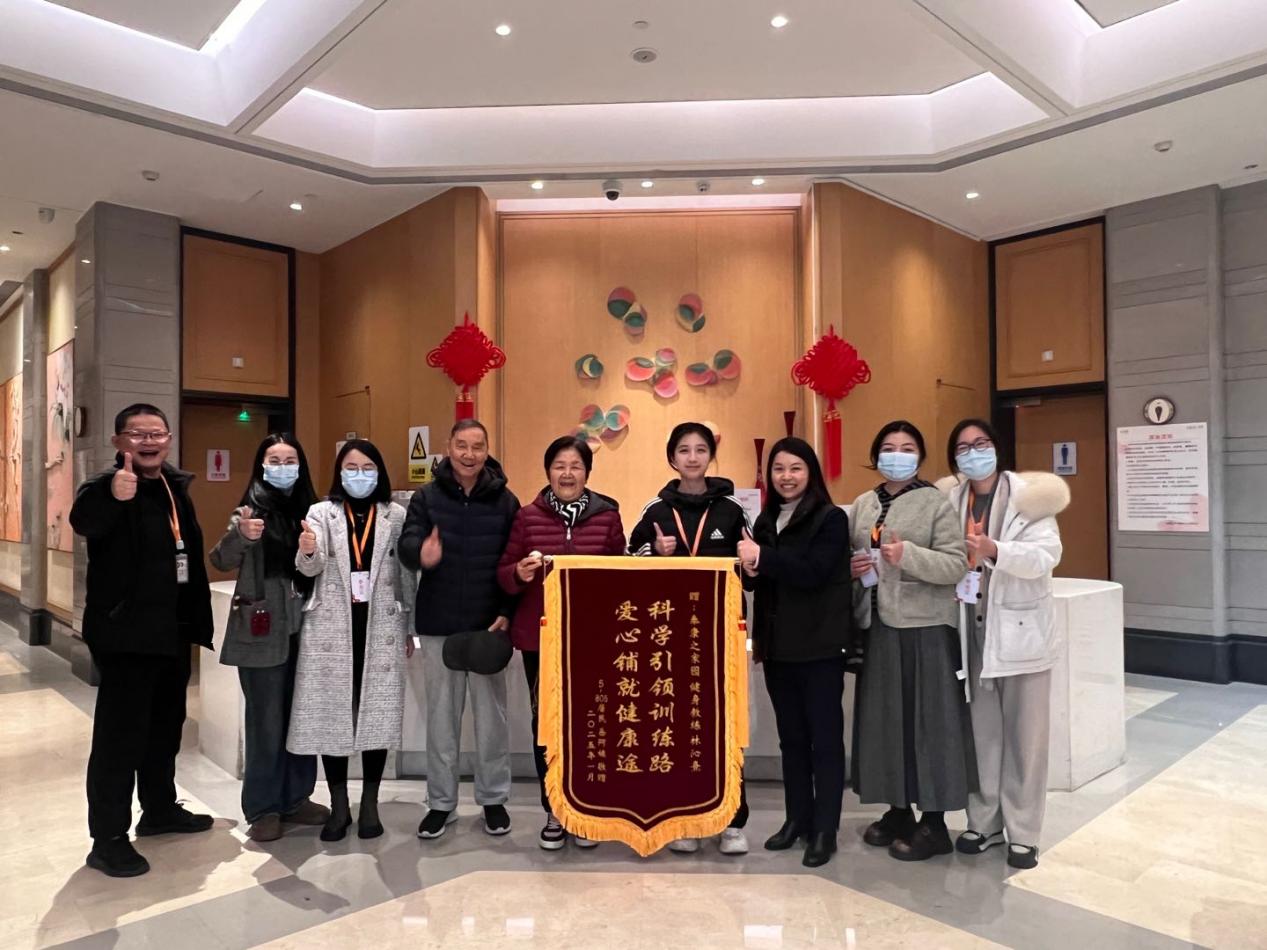 在林沁熹的悉心指导下,岳阿姨坚持锻炼了两个月,身体状态明显好转,心肺功能得到改善,疼痛也大幅减轻。岳阿姨对林沁熹的指导赞不绝口,第一轮课结束后,送来锦旗表示感谢,并毫不犹豫地续购运动健康管理个性化服务200节。