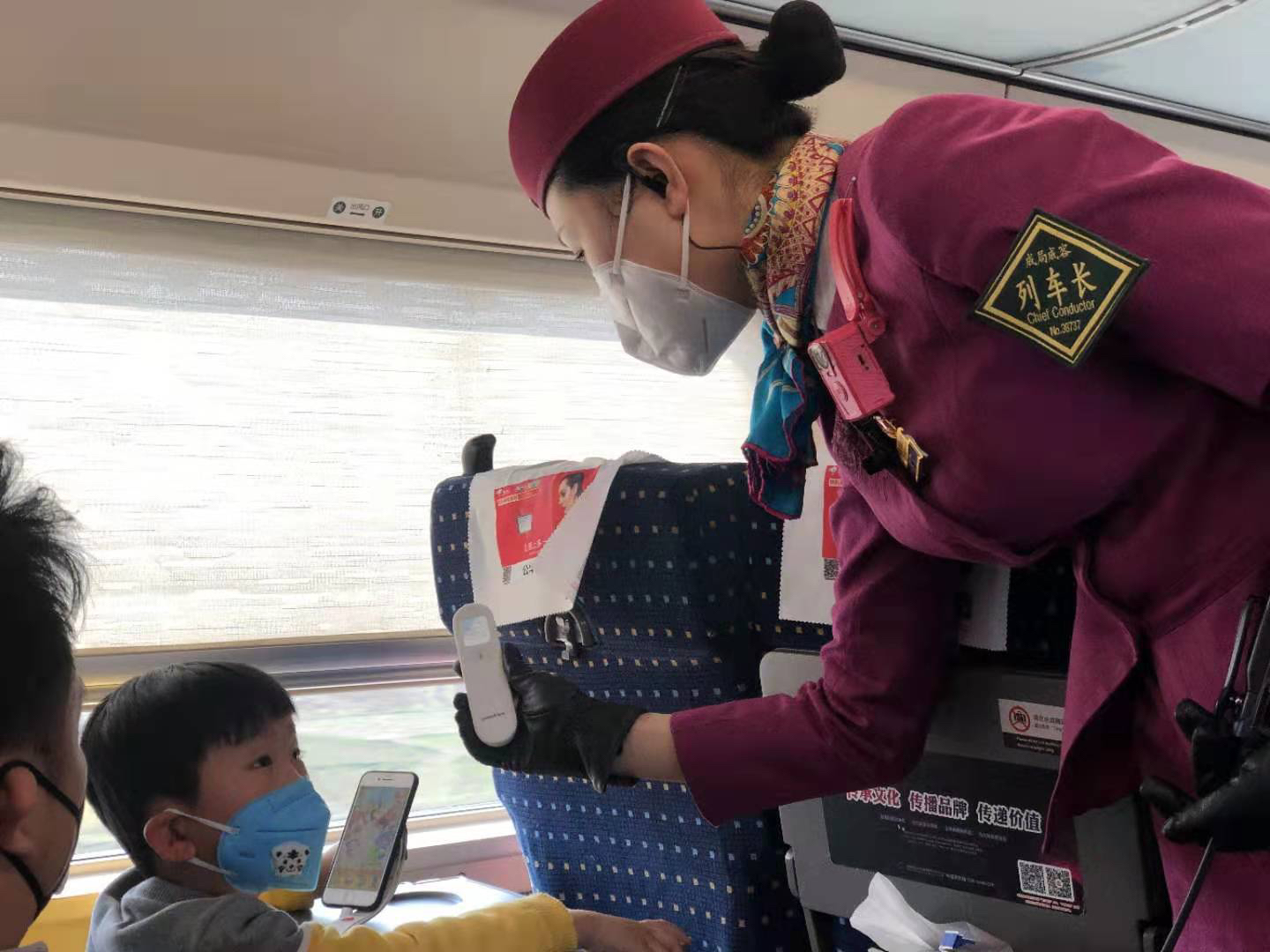 当列车长以来,韩继童第一次面临这么大的考验,心理很慌张。“面对疫情我肯定害怕,列车上客流很大,特别是近期旅客陆续返程,客流还会越来越大……。”她说。