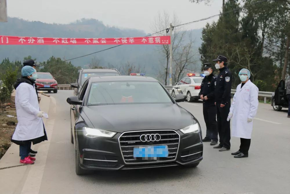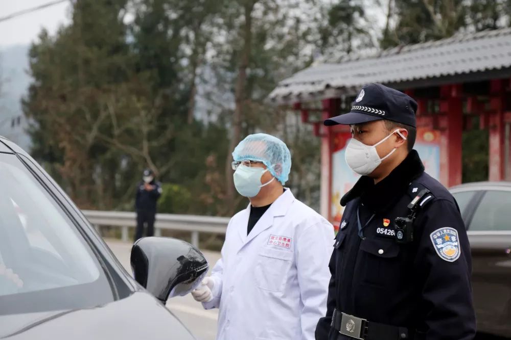 胡林与防疫工作人员一起执勤