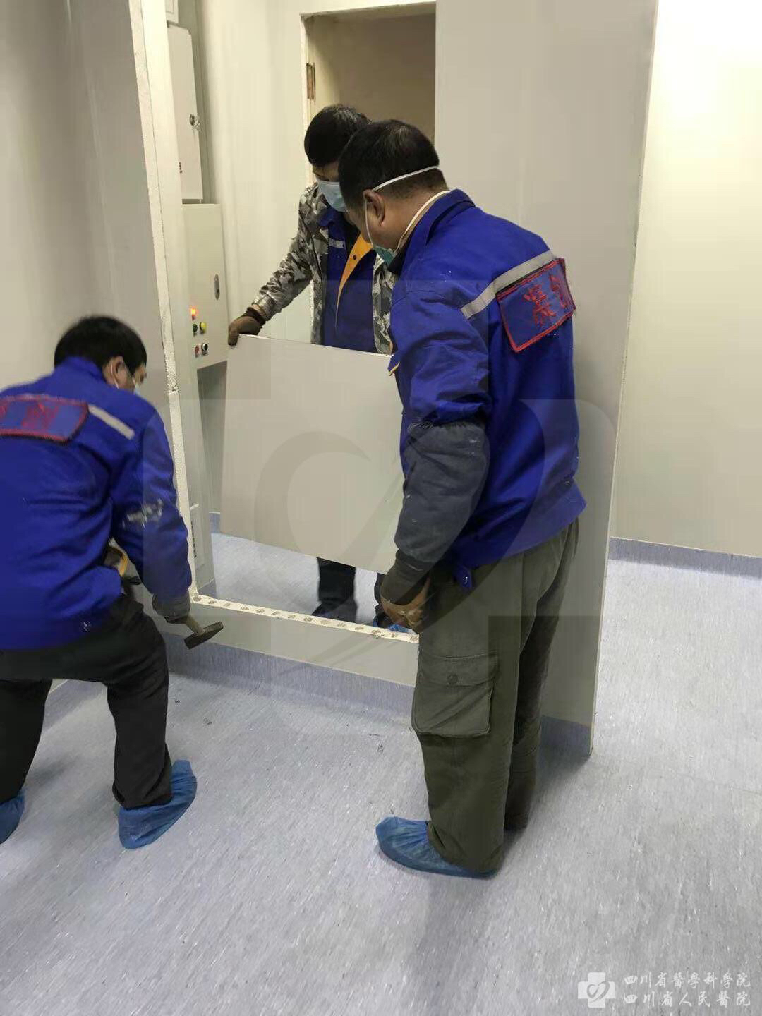 医院基建办2020年1月25日接到改建加强型生物安全二级实验室的通知后,当天就协调从重庆连夜赶来的施工方准备材料、设备,验收、转运材料,现场放线、定位,同时和检验科反复讨论,做好了施工前的准备工作。1月27日开始正式施工,经过6天加班、熬夜,于2月2日凌晨5点过完成了平时需30天完工的项目。