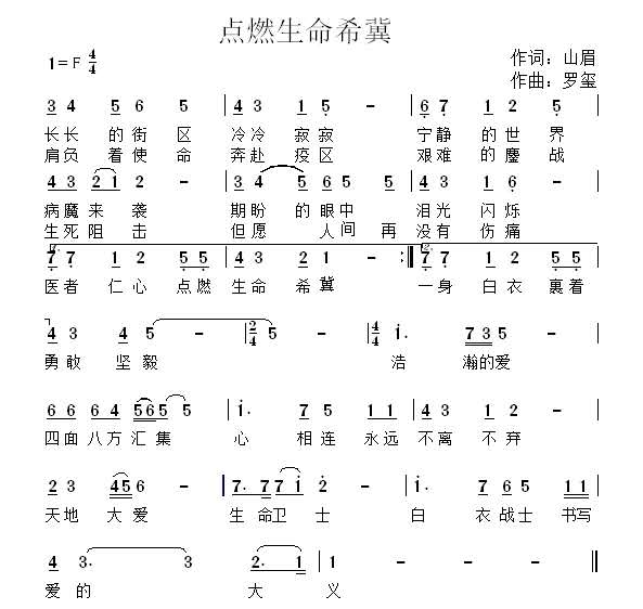 2月2日,眉山诗人、词作家山眉创作了歌词《点燃生命希冀》,邀请罗玺为该作品作曲编曲。经过几个白天晚上的加班创作,2月6日,歌曲完成。