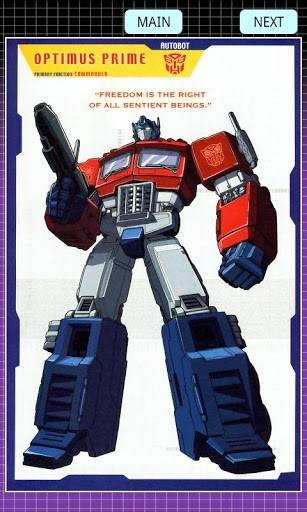 在那个时候的玩具包装和卡图说明上,汽车人首领擎天柱的头上写着“自由是所有有意识的生命的权利,而霸天虎的首领威震天的头上则是“和平经由暴政”。