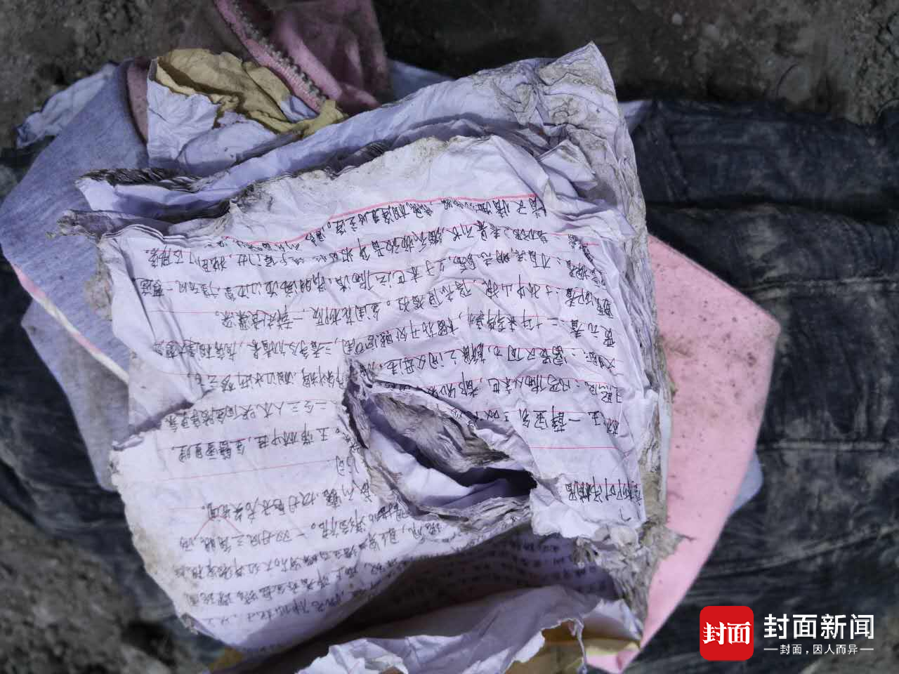昨(24)日,救援人员在现场挖出来的张娇的作业本