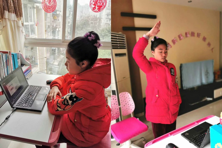 乐山市海棠中学的孩子们通过网络在线学习