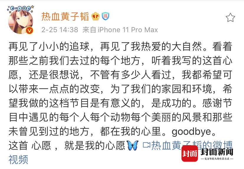 近日,由黄子韬发起的国内首档先锋试验类旅行真人秀《小小的追球》正式收官。节目播出3个多月,豆瓣评分收获8.9,成为近期综艺中的高口碑节目。无论是内容本身,还是衍生出的相关讨论均取得不错的效果。作为项目发起人的黄子韬,在收官之际还为节目创作歌曲《心愿》。