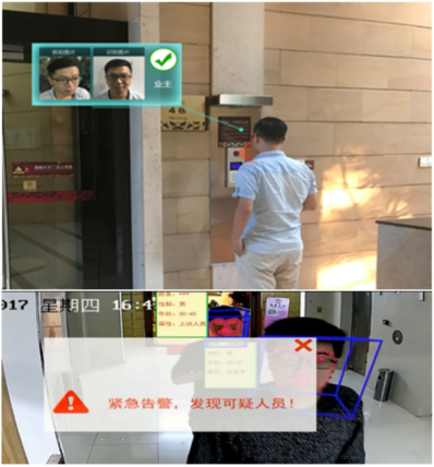 通过小区第二道防线后,记者来到小区单元门前,单元门人脸自动识别业主身份,同时增加热测温实现高烧人员出入告警。