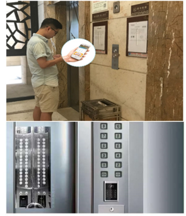 更方便的是,在小区的电梯门前设置了第四道防线,小区居民通过智能梯控系统,不需要用手接触电梯按钮,小区业主通过手机APP就可到达自己所在楼层,实现无接触乘坐电梯,减少接触电梯按键带来的风险。
