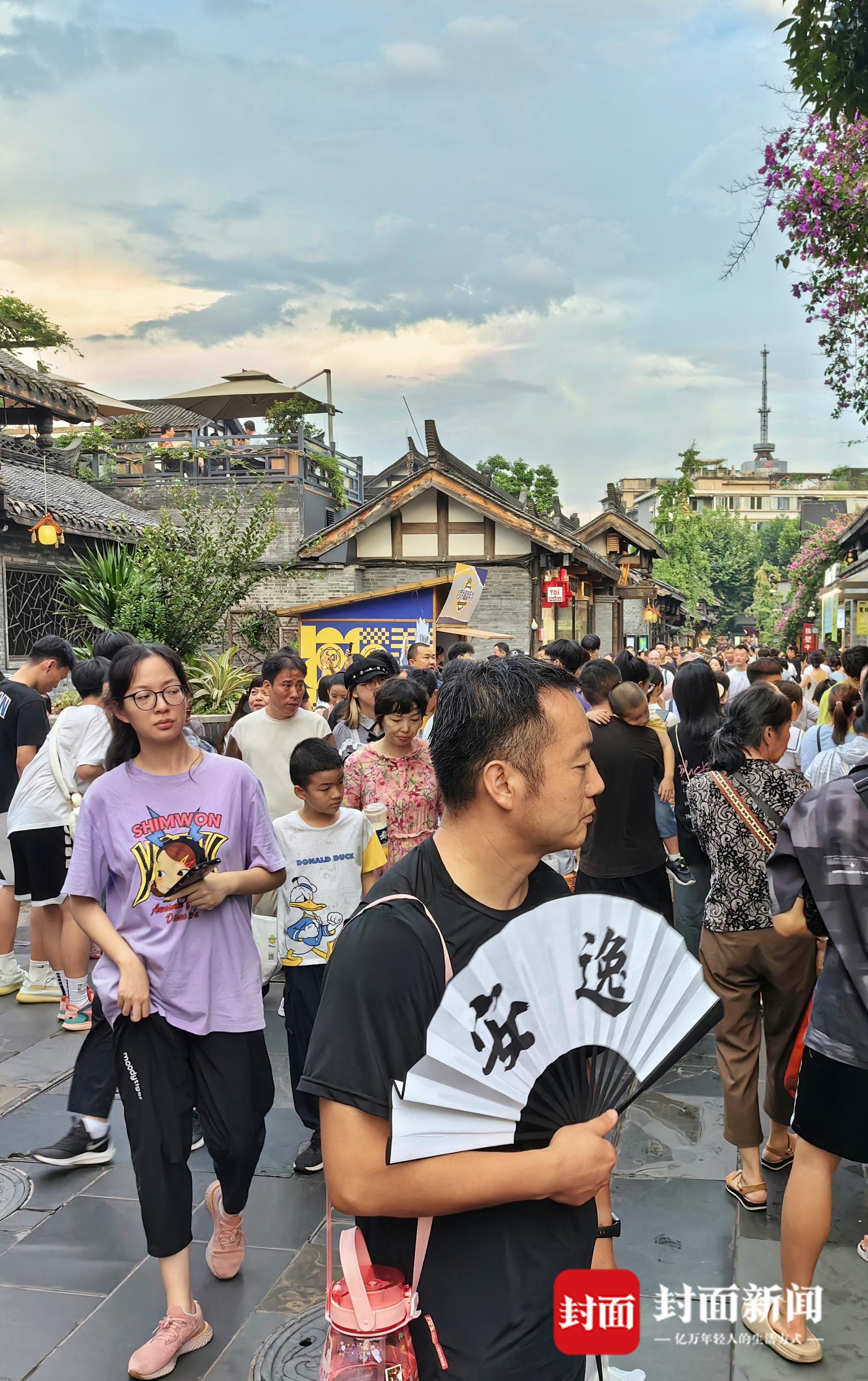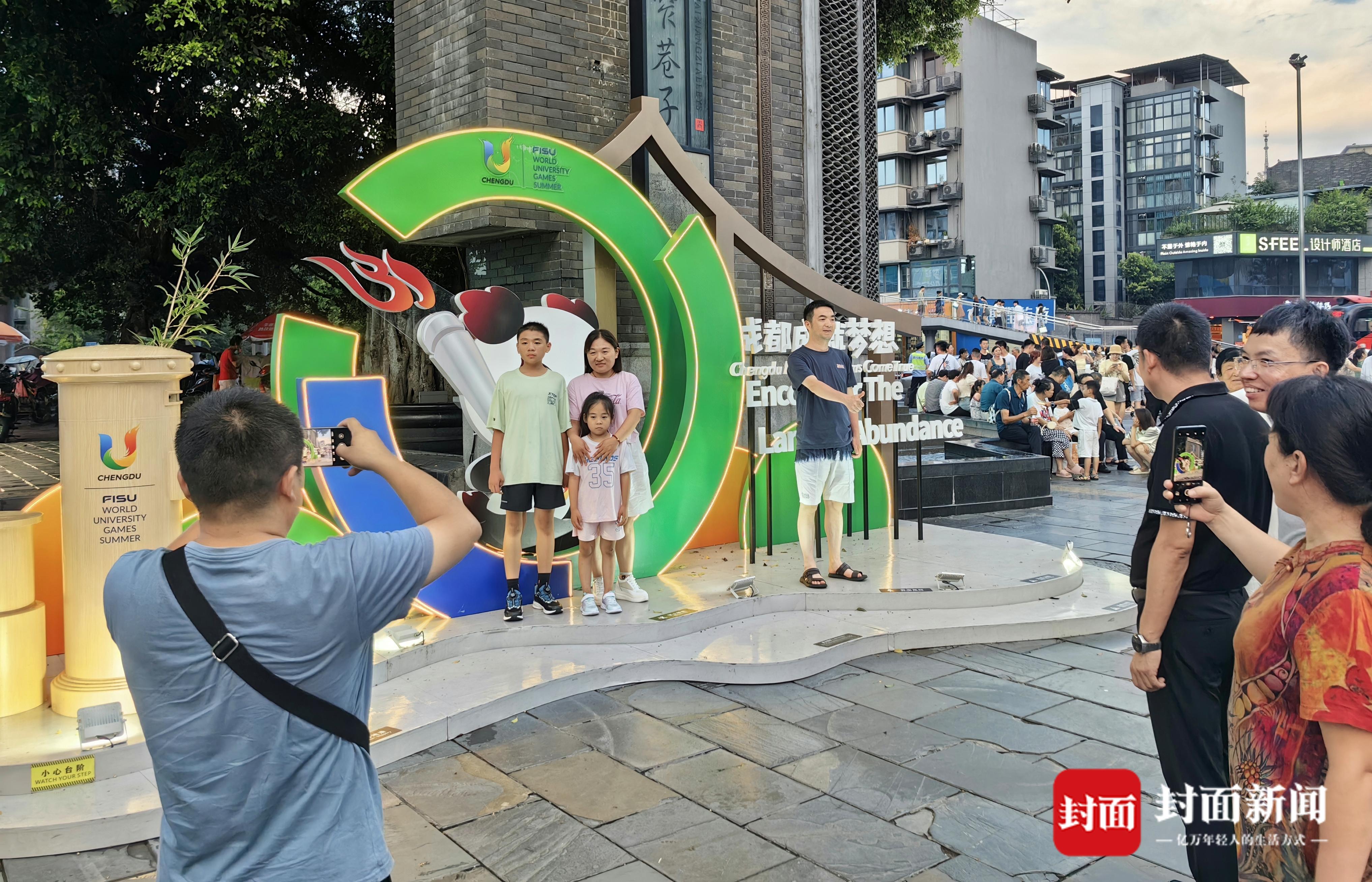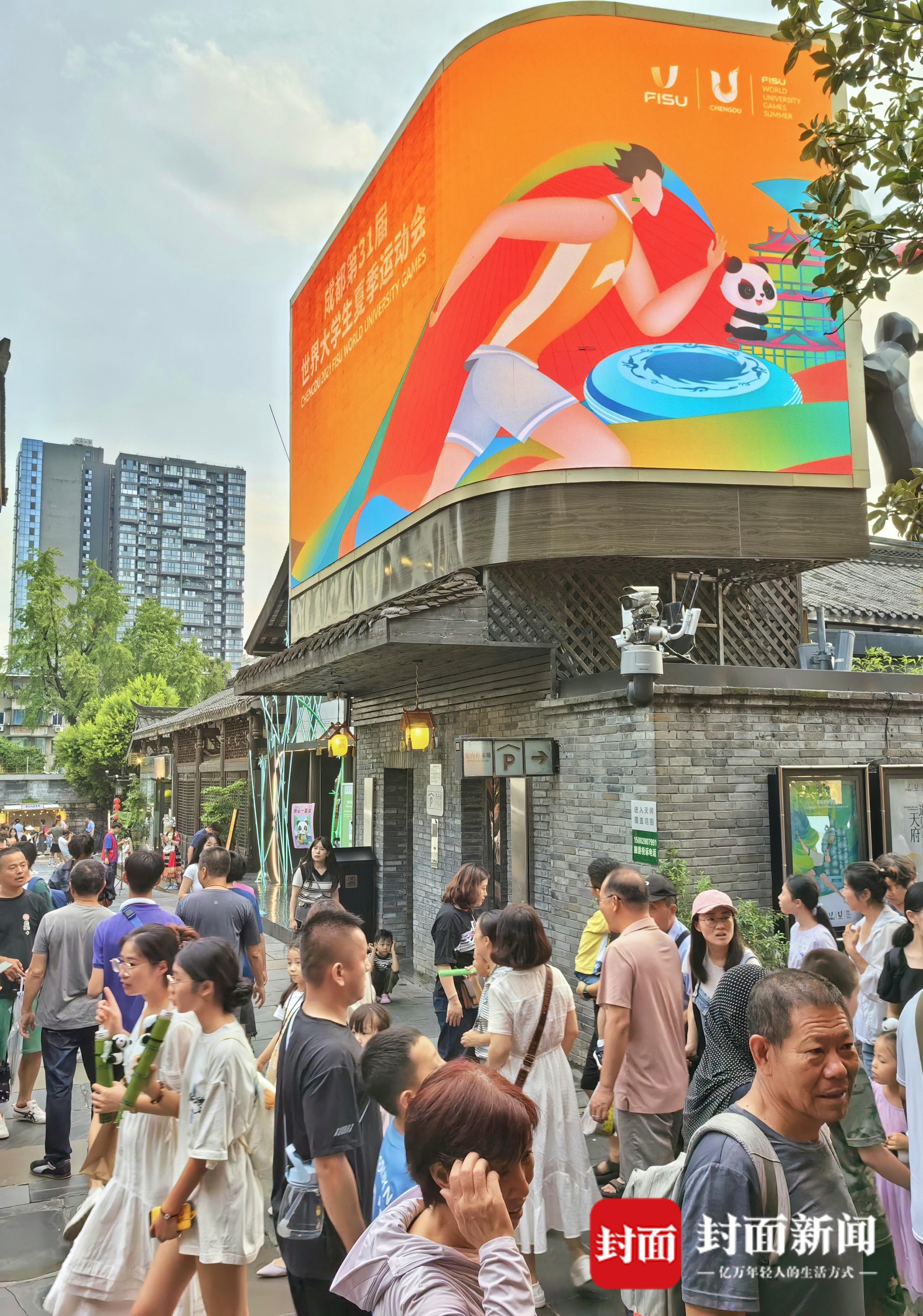 8月4日,暑期的成都宽窄巷子景区游人如织,热闹非凡。正值成都大运会期间,景区除了传统的游玩方式外,景区还充满了大运会氛围,游人争相在大运会宣传板前打卡拍照,熊猫饰品也成了热门纪念品。