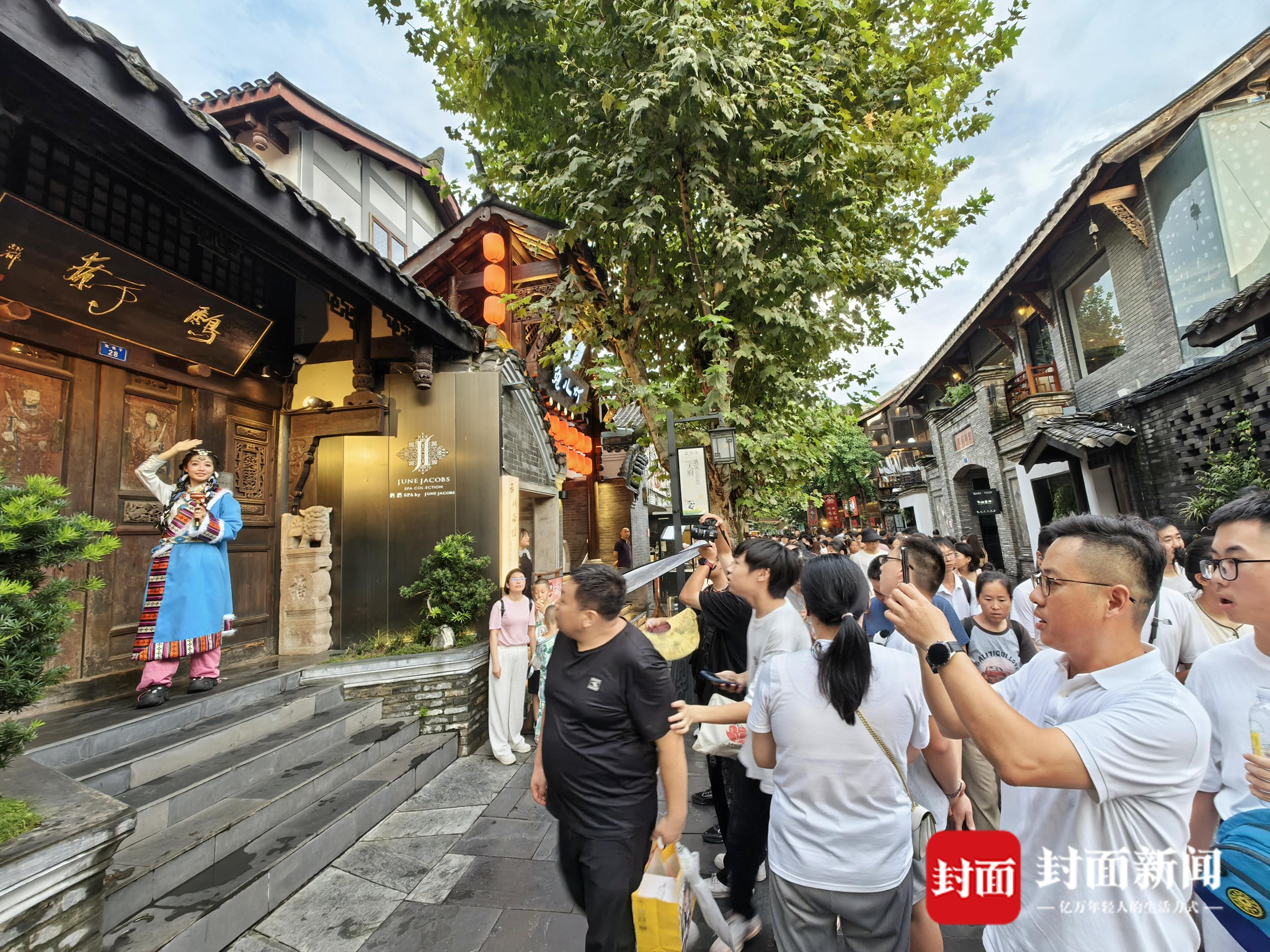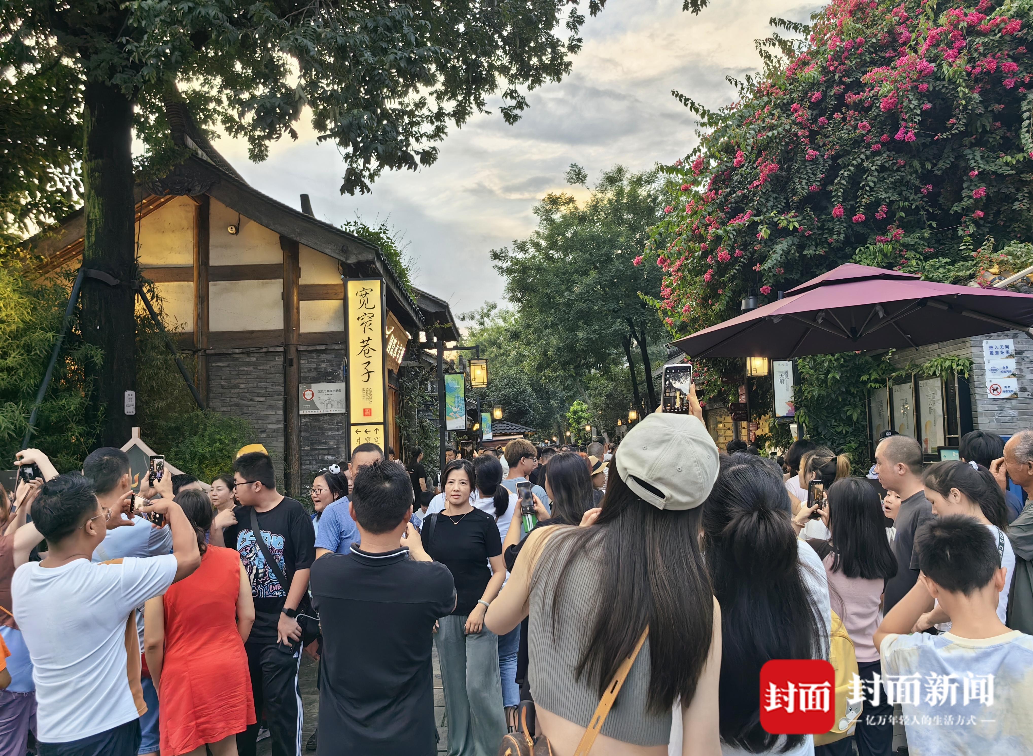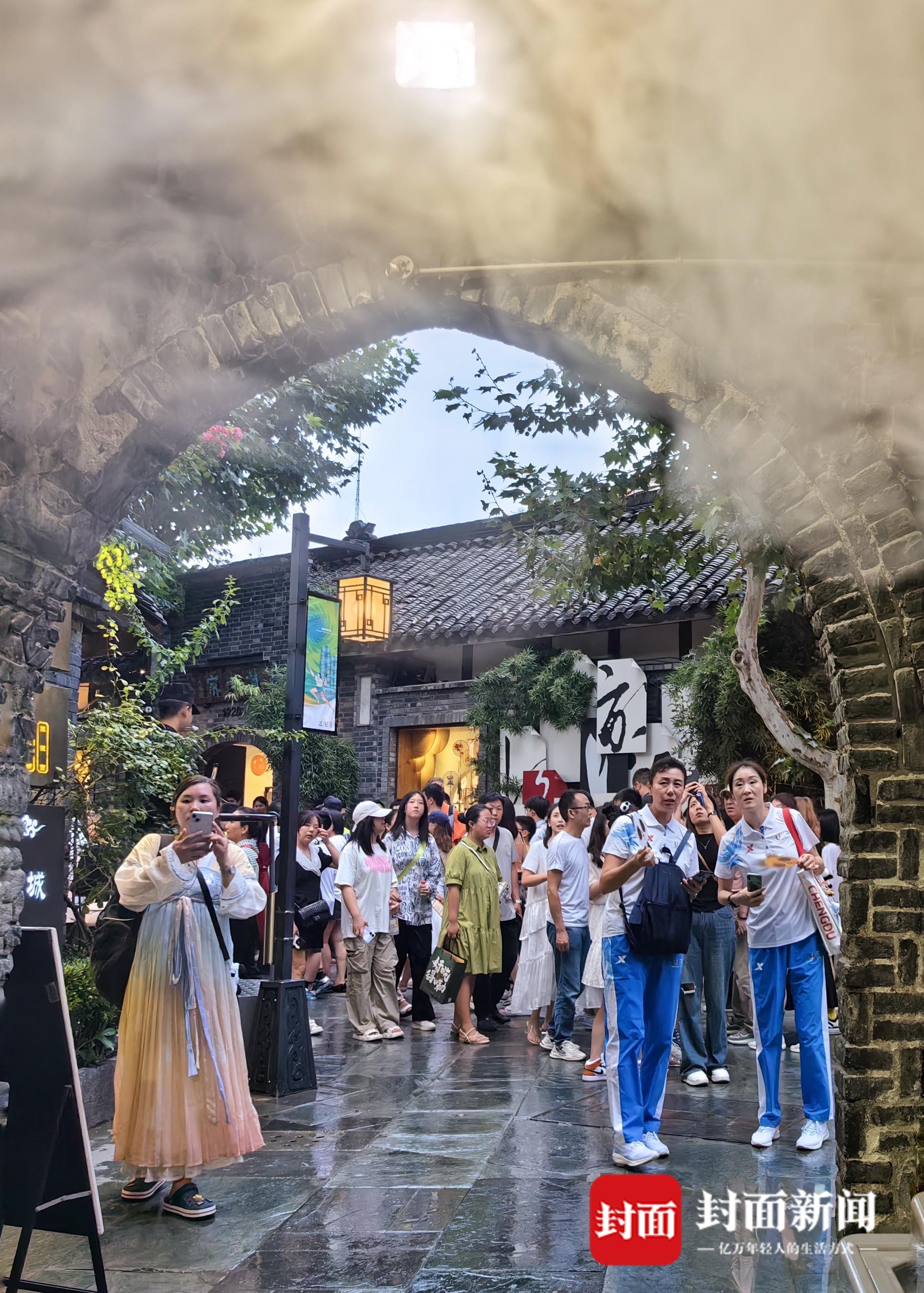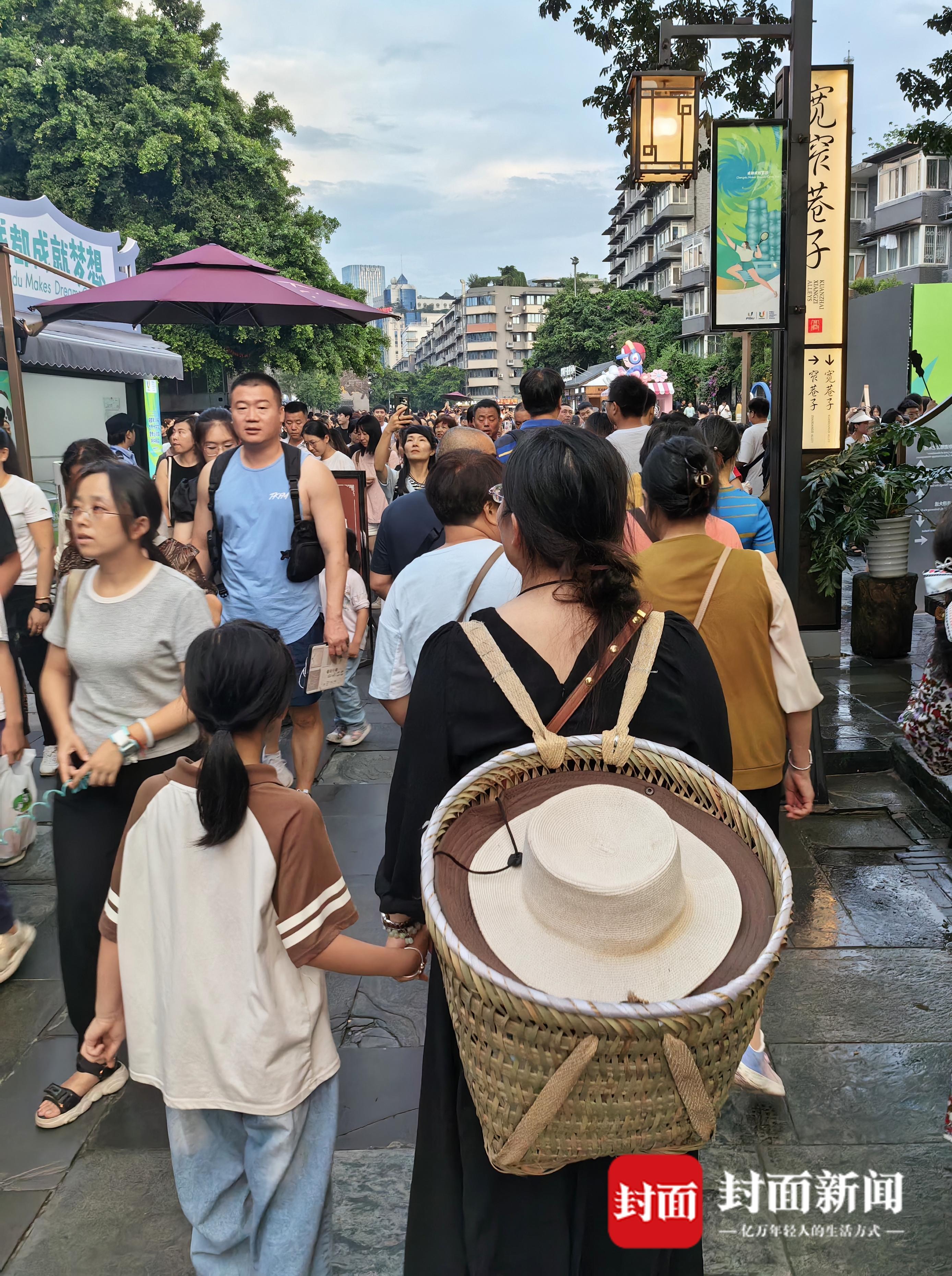 8月4日,暑期的成都宽窄巷子景区游人如织,热闹非凡。正值成都大运会期间,景区除了传统的游玩方式外,景区还充满了大运会氛围,游人争相在大运会宣传板前打卡拍照,熊猫饰品也成了热门纪念品。