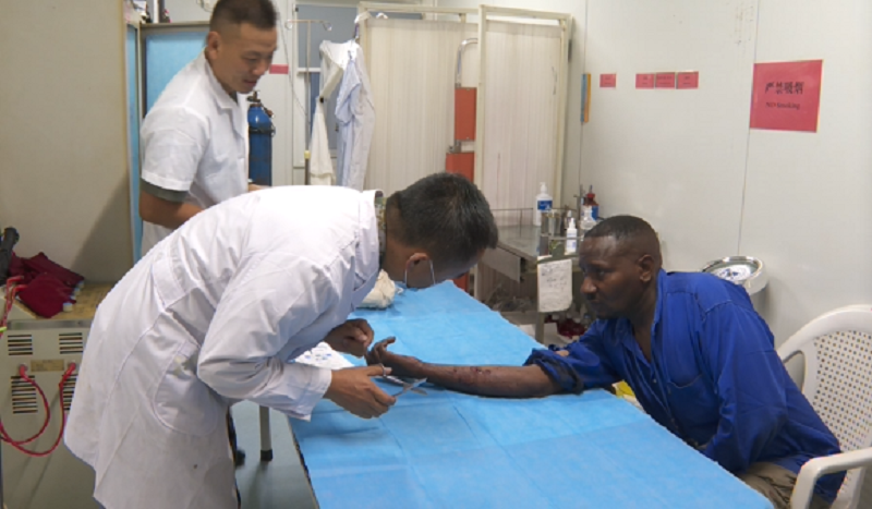 由于语言不通,医务人员只能通过简单的肢体动作与伤员交流。考虑到当地医疗条件落后,药物匮乏,在成功完成手术后,一级医院还给伤员赠送了后期恢复所需的医疗药品。伤员临行前,不停地向医务人员竖起大拇指,并双手合十,用自己特有的方式,表达了对中国维和官兵的谢意。