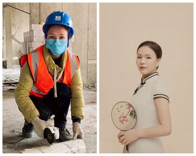 女工友张卫在朋友圈晒出“工作自拍照VS旗袍照”照片,一张是身穿工装、头带安全帽、鞋上沾满泥的工地自拍照,另一张是亭亭玉立、温婉示人的旗袍照,获得了众多点赞,被她的华丽“变身”所惊艳。